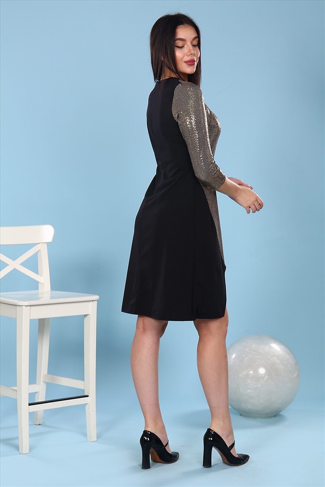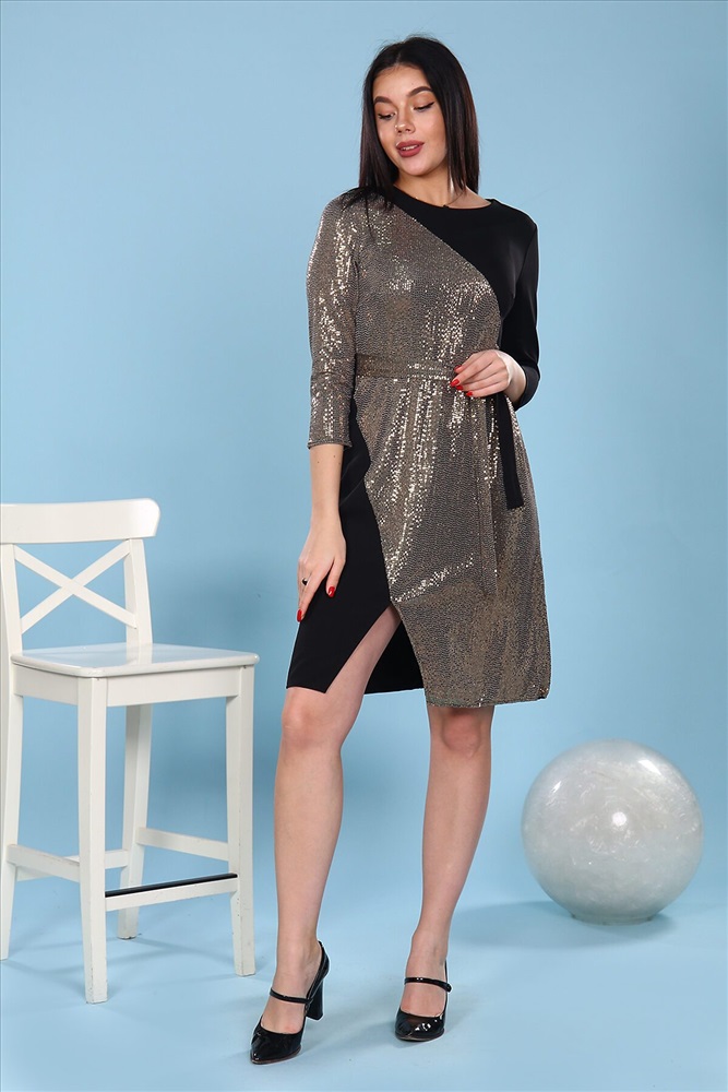 ID товара: 733761 Состав: 95% Полиэстер, 5% Эластан Сезон: Демисезон Длина: До колена Фасон: Приталенное Рукав: 3/4 Вырез горловины: Округлый Декоративные элементы: Пайетки Основная ткань: Полиэстер | Атаман, пайетки Стиль: Нарядный Страна бренда: Россия Страна производства: Россия Платье приталенного силуэта. Рукав 3/4. Вырез горловины круглый. Полотна асимметричного кроя из двух видов ткани, линия талии подчеркнута поясом. Комментарии к товару