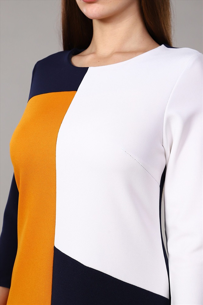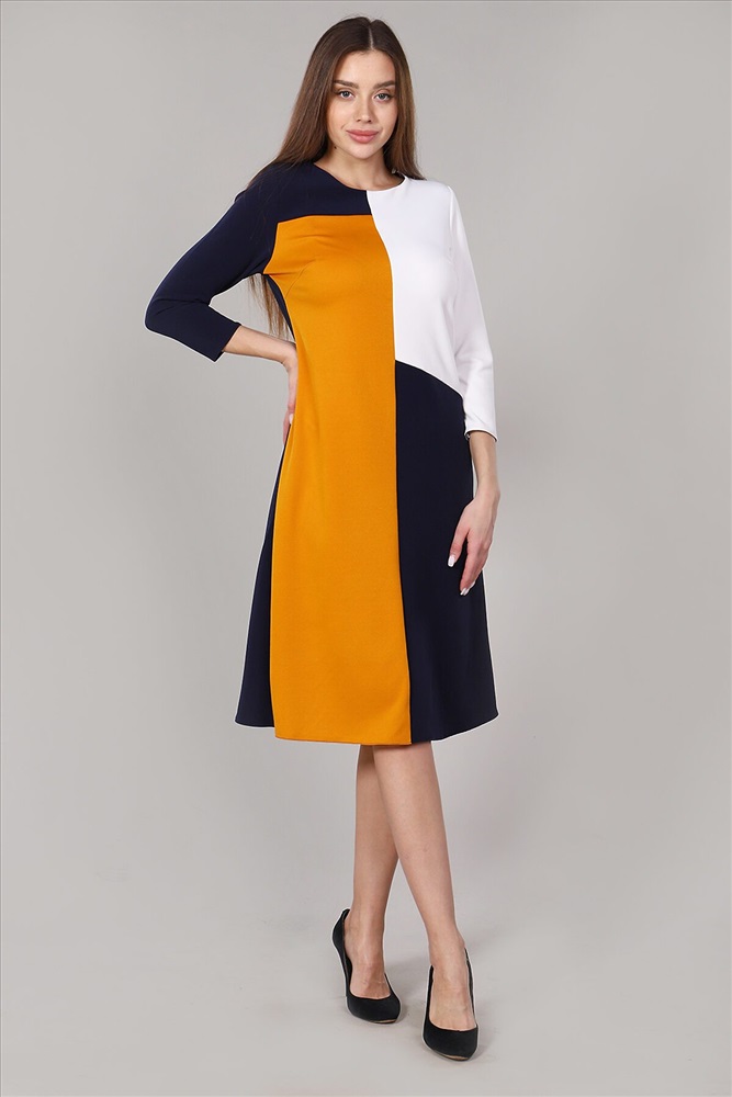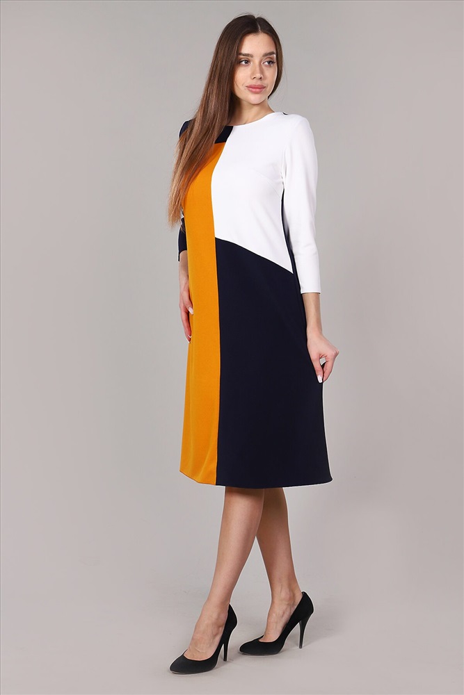 ID товара: 738834 Состав: 95% Полиэстер, 5% Эластан Сезон: Осень/Зима Длина: Ниже колена Фасон: Приталенное Рукав: 3/4 Вид застежки: Без застежки Вырез горловины: Округлый Основная ткань: Полиэстер | Атаман, диор Стиль: Повседневный Страна бренда: Россия Страна производства: Россия Платье приталенного силуэта. Юбка расширена к низу. Рукав 3/4. Горловина обработана обтачкой. Платье выполнено из тканей 3-х цветов. Комментарии к товару