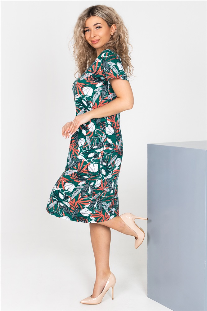 Состав: 100% хлопок Модель: Платье 45604 Тип товара: платье Материал: кулирка | кулирка Бренд: Натали Суслова Длина: средняя длина Карман: без карманов Рейтинг: Рейтинг 4 и выше Рисунок: цветы Рукав: короткий рукав Сезонность: лето | осень | весна Силуэт: полуприлегающий Воротник: без воротника Застежка: без застежки Платье женское из кулирного трикотажного полотна полу прилегающего силуэта, длиной ниже колена. Плечо удлиненное. Рукав втачной длиной до локтя. Горловина округлой формы с вырезом - капелькой окантованы основным полотном. Без карманов. Таблица размеров и веса