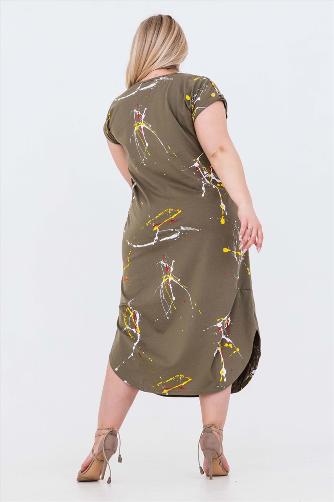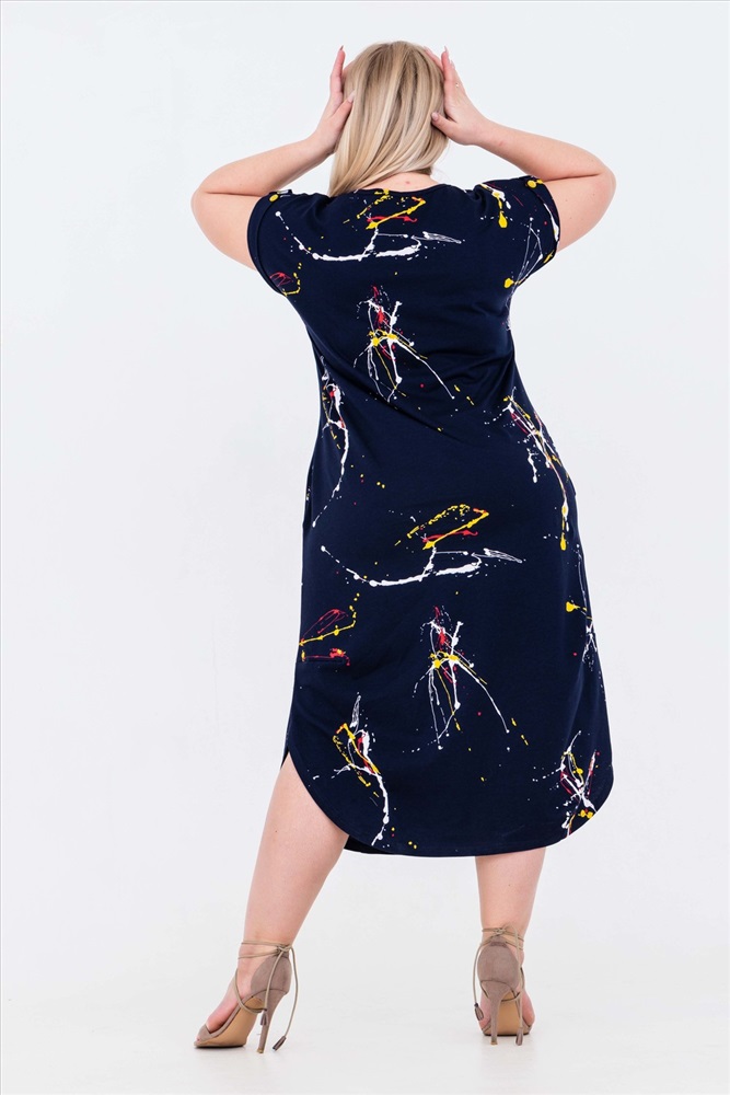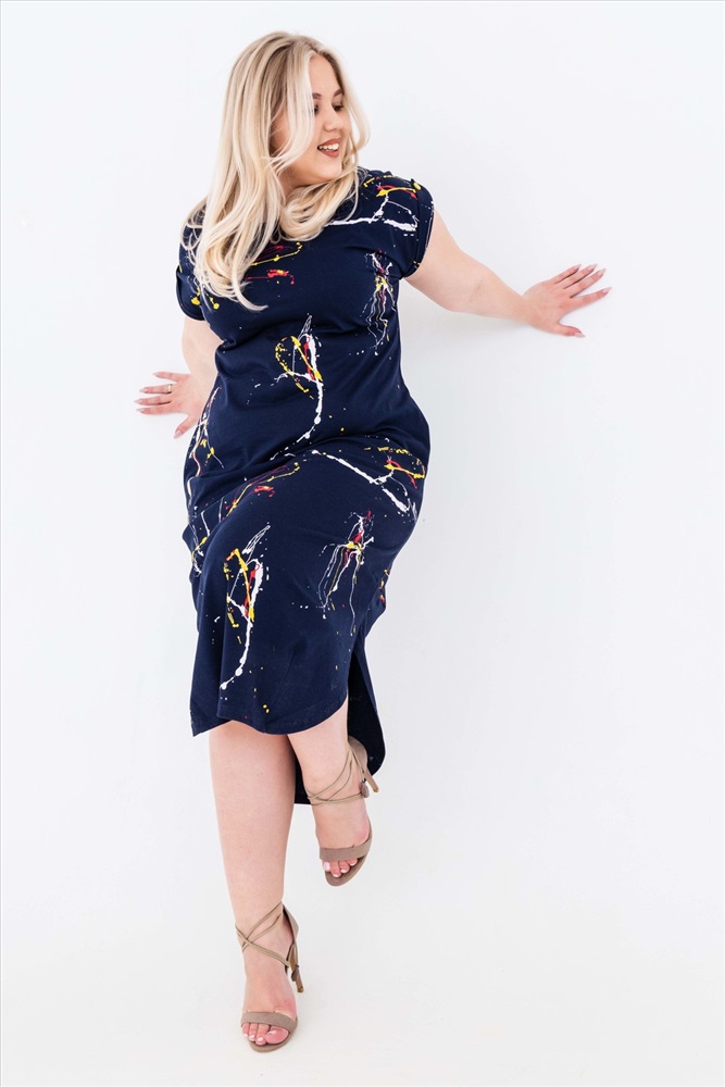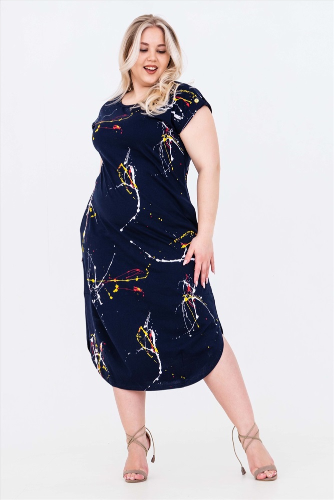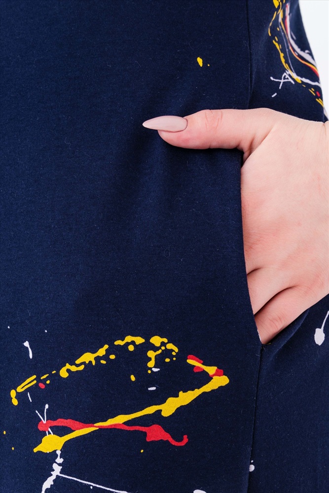 Застежка: без застежки Стильное платье из кулирки. Свободный крой, округлый вырез горловины, длина миди, разрезы в боковых швах, короткий втачной рукав, дизайнерский принт. Платье имеет большую размерную сетку и подойдет на любую фигуру. Карманы в боковых швах придают платью практичности. Платье сшито из самого качественного трикотажа кулирки. Она состоит из чистого хлопка и неимоверно приятно в носке. Благодаря натуральному составу платье дышит, не вызывает аллергий и раздражений. Ткань износостойкая и легко переносит множество стирок и глажек. Туника женская очень удобна и как платье на каждый день, и во время летних прогулок, пикников и веселых загородных поездок.