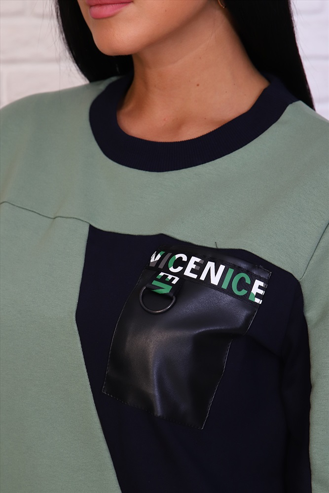 Застежка: без застежки Платье женское рельефное с декоративными карманами из эко-кожи, рукав 3/4, длина ниже колена, большой размерный ряд.