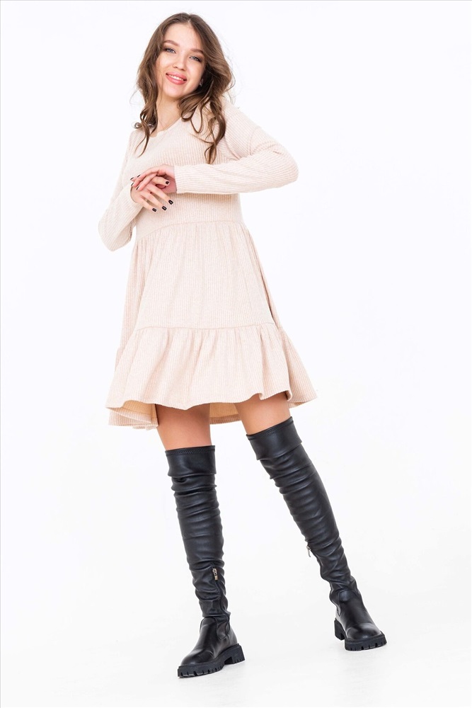 Нежное, женственное платье с воланами является одним из главных трендов 2022 года. Рюшами и оборками можно выгодно скорректировать фигуру, добавив объема там, где он требуется. Кроме всего, воланы скрывают живот, поэтому подходят полным девушкам. Романтичное платье на все случаи жизни! Разнообразие луков - от косухи и грубых ботинок на весну до кроссовок и босоножек на прохладное лето. Нежный мягкий кашемир. Модная в этом сезоне полоска. Платье свободного кроя. Подойдет и будущим мамам! Длинный рукав. В трех расцветках.
