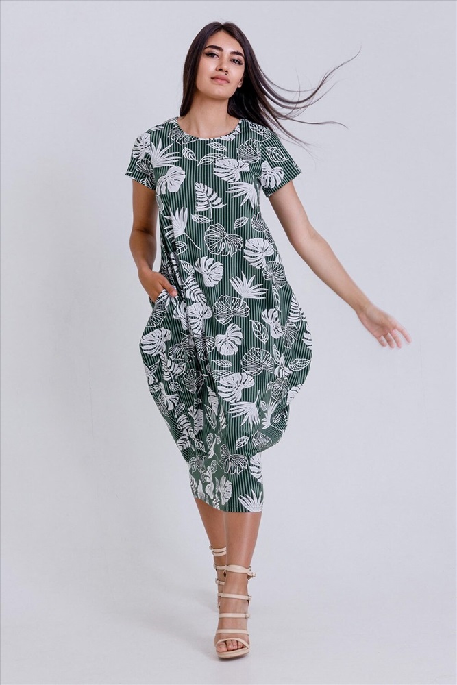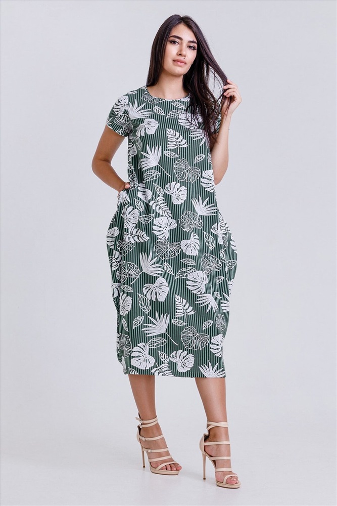 Производитель: НАТАЛИ ID товара: 796342 Состав: 100% Хлопок Сезон: Весна/Лето Длина: Миди Фасон: Приталенный Рукав: Короткие Вырез горловины: Округлый Рисунок: растительный, цветочный Тип карманов: Прорезные Основная ткань: Кулирка Страна бренда: Россия Страна производства: Россия