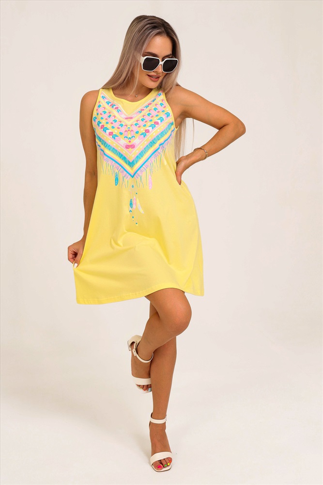 Застежка: без застежки Представляем Вам летнее платье под романтичное настроение! Платье представлено в 5 расцветках - яркие жёлтый, голубой и розовый цвета выделят Вас и прекрасно подчеркнет Вашу женственность, а базовые черный и, конечно же, молочный цвета не утратят своей актуальности. Оно придется по душе каждой женщине и девушке, Платье средней длинны, свободного трапециевидного кроя, Изготовлена модель из плотной, мягкой и очень приятной к телу ткани - высшего качества! Летнее платье женское подойдет на море как домашнее платье на прогулку, в кафе, в отпуск, путешествие, Расклёшенная, свободного кроя модель платья подойдёт для абсолютно любой фигуры, Модель отлично подойдет как платье для беременных, будущих мам и кормящих. Платье отлично сядет на высоких и невысоких благодаря хорошо продуманному крою. Это нежное и нарядное платье не просвечивает и не электризуется. Широкий размерный ряд. Плотность ткани 170гр/м2. Это качество ткани люксовых изделий. Размер на модели 46.