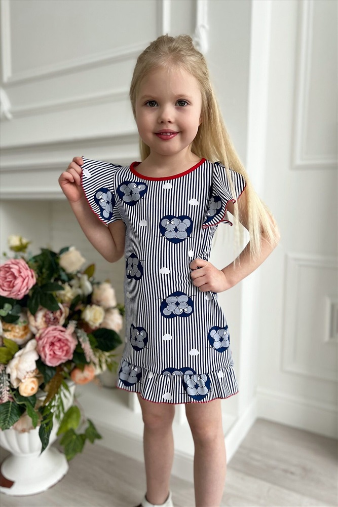 Страна производства: Россия Платье для девочки. Рукав-крылышко, по низу изделия оборка.