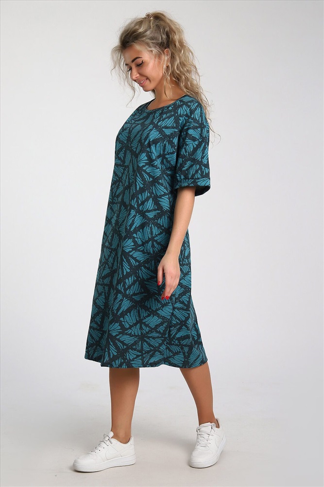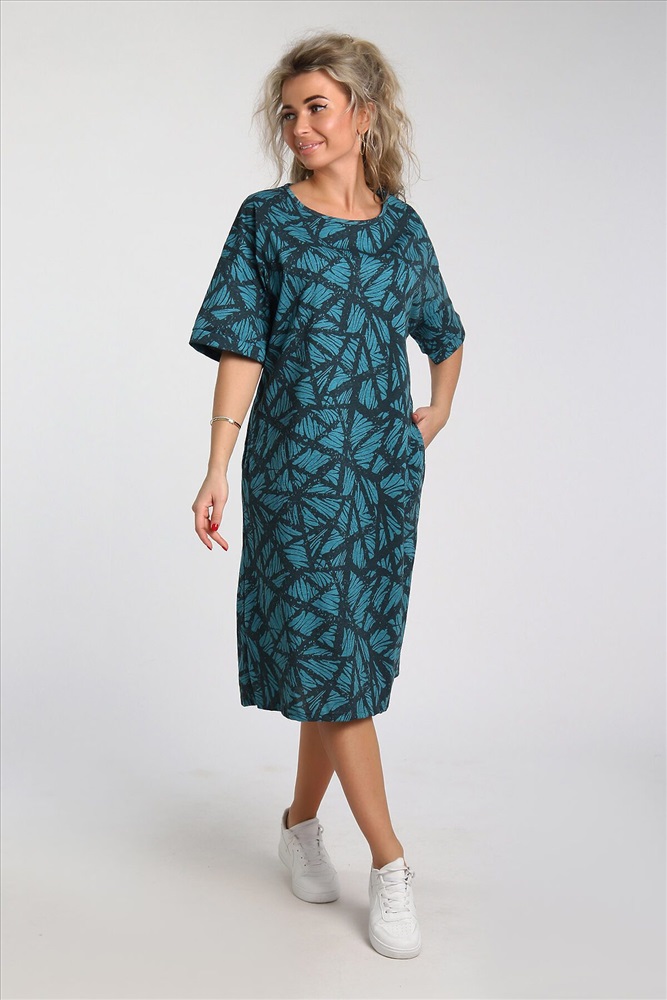 ID товара: 978127 Состав: 100% Хлопок Сезон: Весна/Лето Длина: Миди Фасон: Прямое Рукав: короткие Вырез горловины: Округлый Рисунок: растительный Тип карманов: В шве Декоративные элементы: Принт Основная ткань: Хлопок Стиль: повседневный Вид ткани: Кулирка Страна бренда: Россия Страна производства: Россия Платье из хлопковой кулирки, Силуэт прямой, два боковых кармана, рукава короткие на базе спущенного плеча. Контрастный орнамент в насыщенных гармоничных тонах. Комментарии к товару