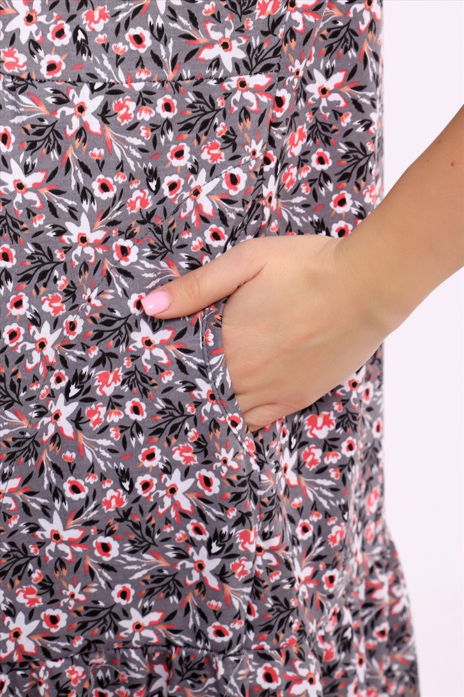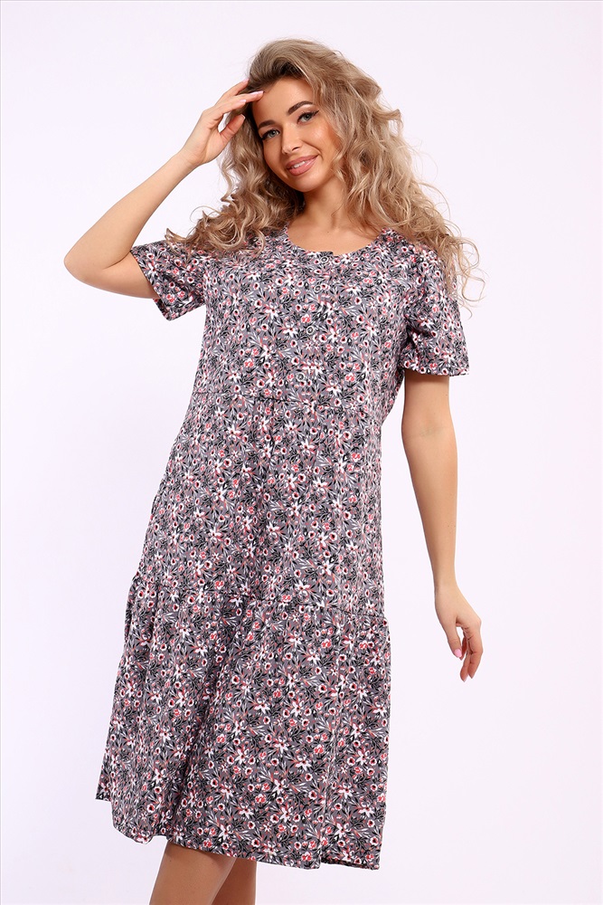 Застежка: пуговицы Платье трикотажное из хлопковой кулирки в стиле кантри, в верхней части застегивается на пуговицы. Рукав до локтя.