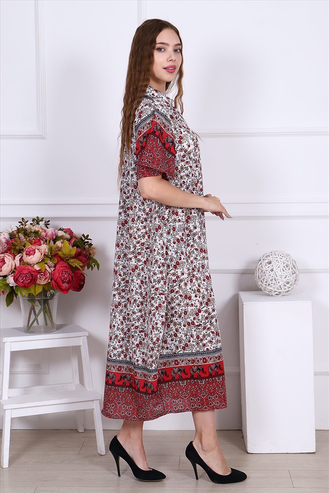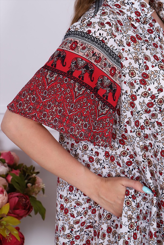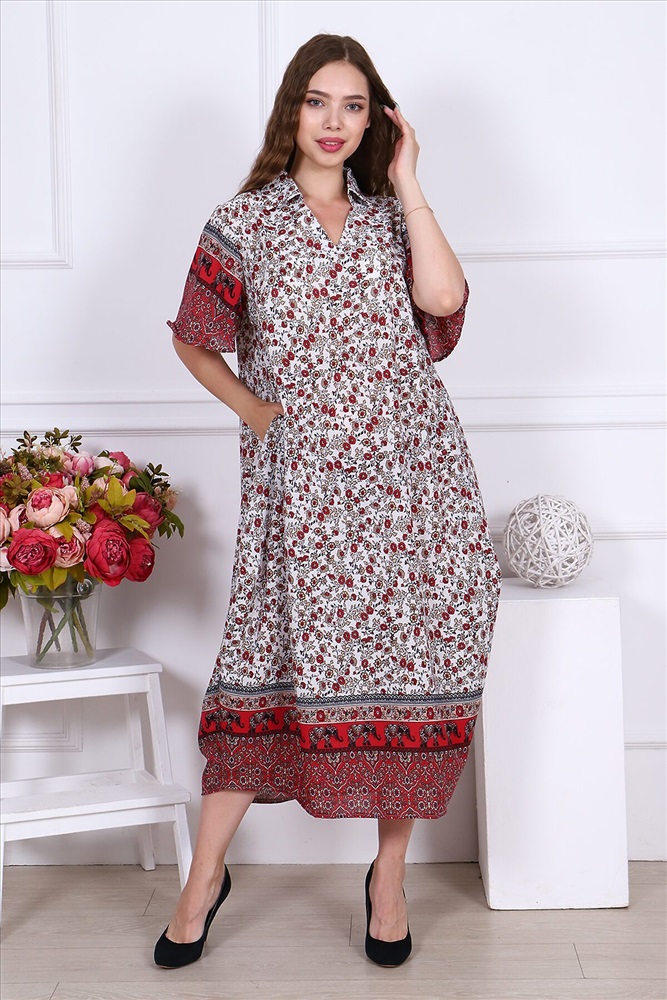 Производитель: НАТАЛИ ID товара: 789943 Состав: 100% Полиэстер Сезон: Весна/Лето Длина: Миди Фасон: Свободный крой Рукав: Короткие Вырез горловины: Отложной воротничок Рисунок: Орнамент Тип карманов: В шве Декоративные элементы: Принт Основная ткань: Хлопок | Софт Стиль: Повседневный Страна бренда: Россия Страна производства: Россия