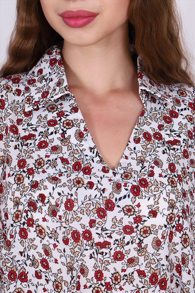 Легкое женское платье свободного кроя, V-образный воротник, рубашечного типа. Короткий рукав. Платье свободного кроя, заужено к низу.