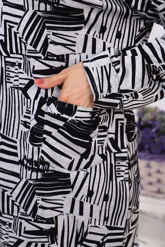 ID товара: 795914 Состав: 55% Полиэстер, 45 % Вискоза Сезон: Весна/Лето Фасон: Приталенный Рукав: Длинный Вид застежки: Молния Вырез горловины: Круглый Рисунок: Фантазийный Тип карманов: Накладные Основная ткань: Поливискон Страна бренда: Россия Страна производства: Россия Элегантное платье прямого силуэта, воротник стойка на молнии спереди. Длинный рукав на манжете. Легко, практично и удобно. Комментарии к товару