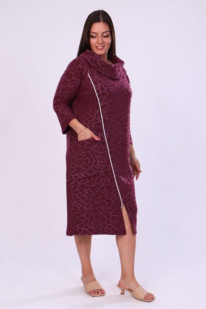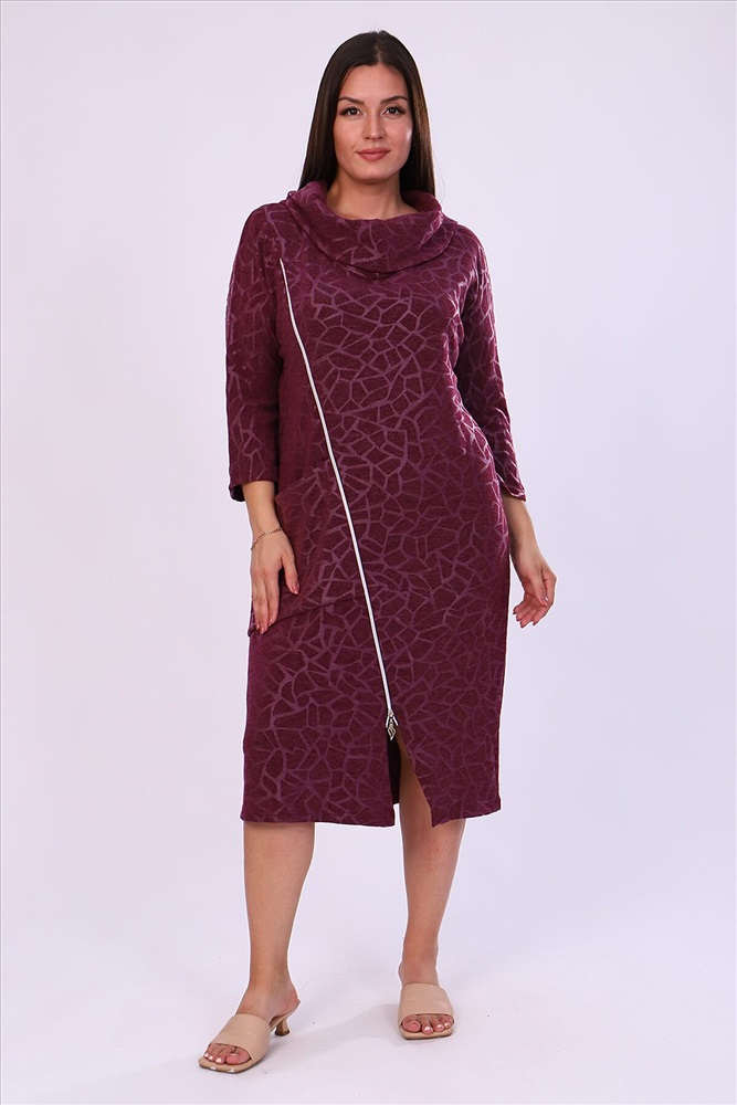 Элегантное женское платье-футляр, воротник хомут, на передней полочке косая молния и накладной карман, рукав 3/4. Практично и удобно.