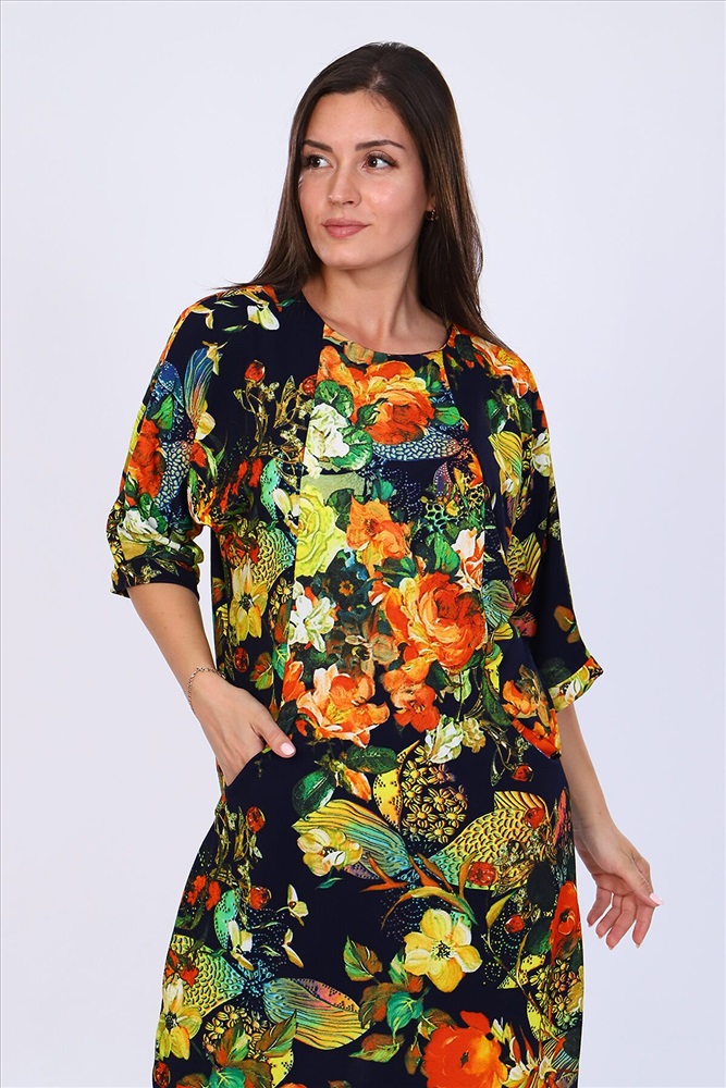 Страна производства: Россия Элегантное женское платье прямого силуэта, округлый воротник, рукав 3/4. Практично и удобно.