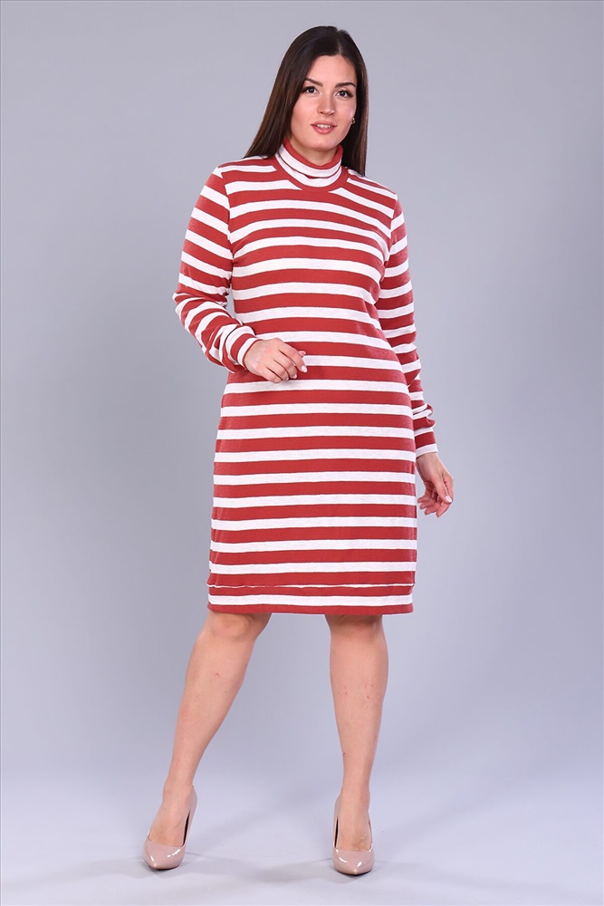 Страна производства: Россия Платье женское прямого силуэта, воротник стойка, длинный рукав на манжете. Низ платья также на манжете. Легко и удобно.