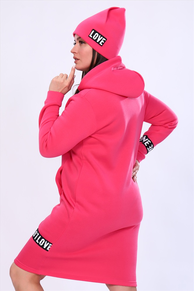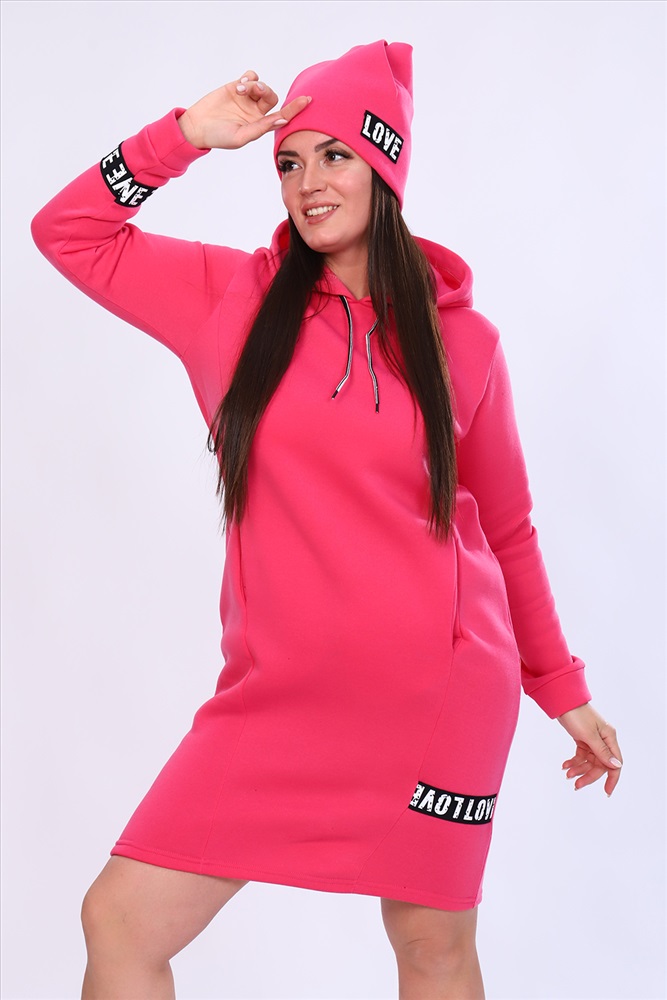 Состав: 65% хлопок, 35% полиэстер Модель: Платье 52222 + шапка Тип товара: толстовка-платье Материал: футер 3-х нитка с начесом | футер 3-х нитка с начесом Бренд: Натали Суслова Длина: короткий Карман: прорезные НДС: 5% Особенности: с начесом Отделка: с карманами | с манжетами | с тесьмой | со шнурком Рейтинг: Рейтинг 4 и выше Рисунок: однотонные Рукав: длинный рукав Сезонность: лето | осень | весна Силуэт: полуприлегающий Скидка: любая | от 10% и больше | от 30% и больше | от 50% и больше Стиль: повседневный | спортивный Воротник: с капюшоном Застежка: без застежки Комплект одежды платье + шапка. Платье прямого силуэта, с капюшоном на шнуровке через люверсы. Длинный рукав на манжетах, на одном рукаве декоративная надпись. На передней полочке внутренние карманы и декоративная надпись. Шапка с отворотом и декоративными ушками. Размер шапки 46-60. Удобно и практично. Таблица размеров и веса