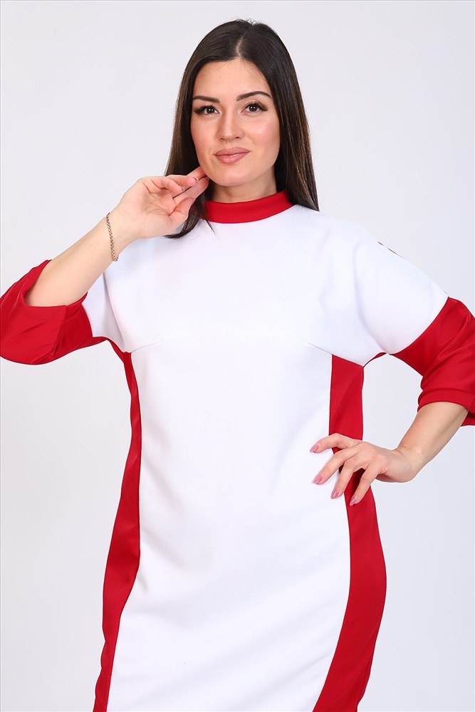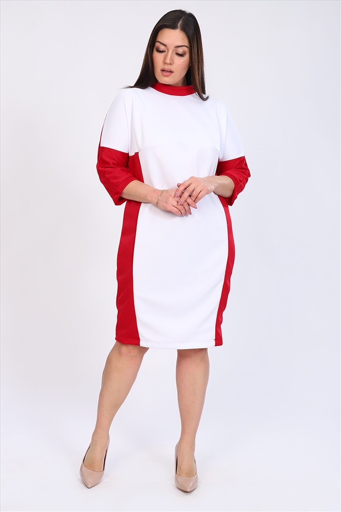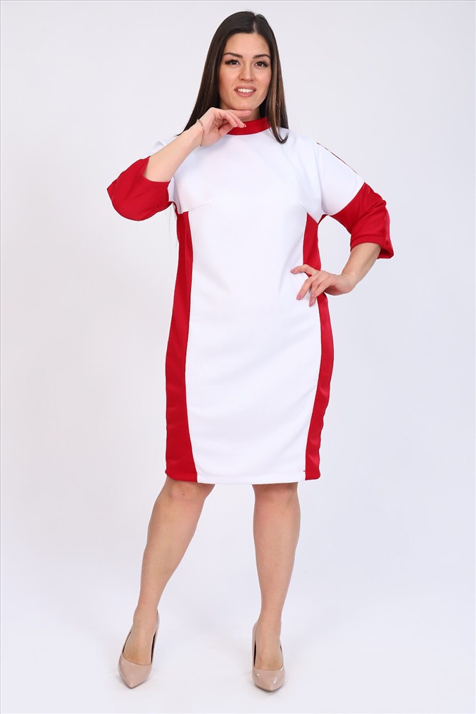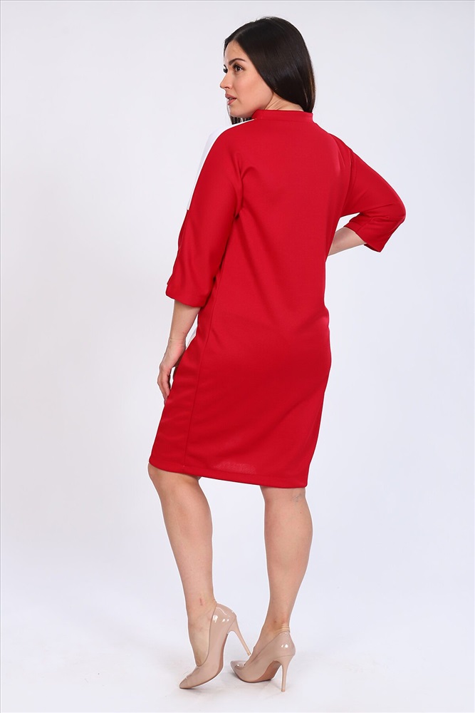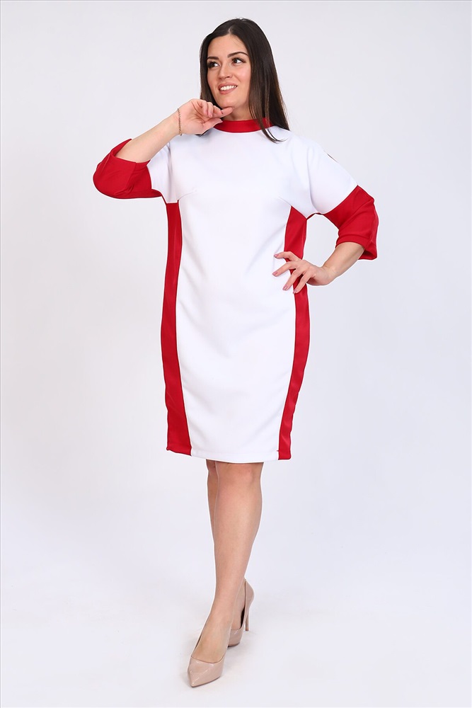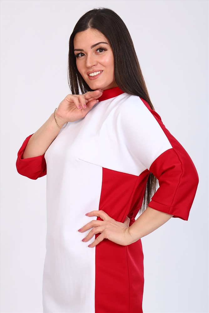Платье женское комбинированное прямого силуэта, округлый воротник, спущенный рукав 3/4,длина рукава от шва. По линии груди вытачки. Элегантное и стильное платье.