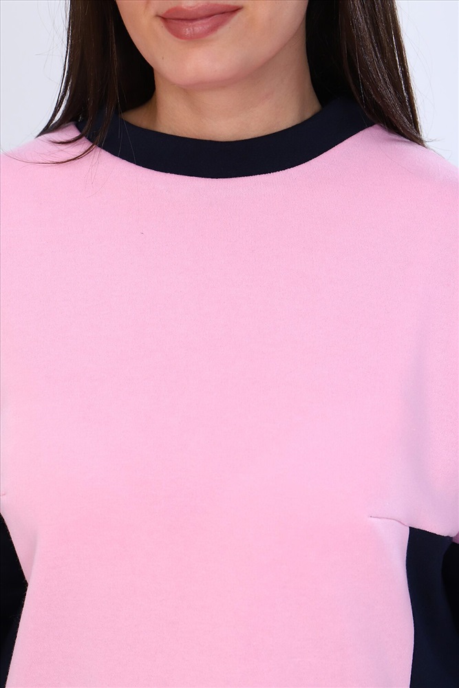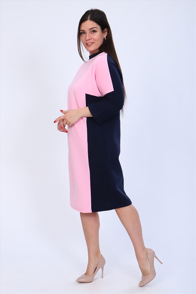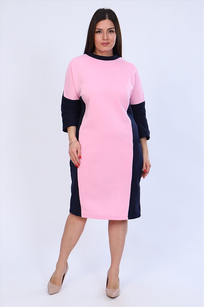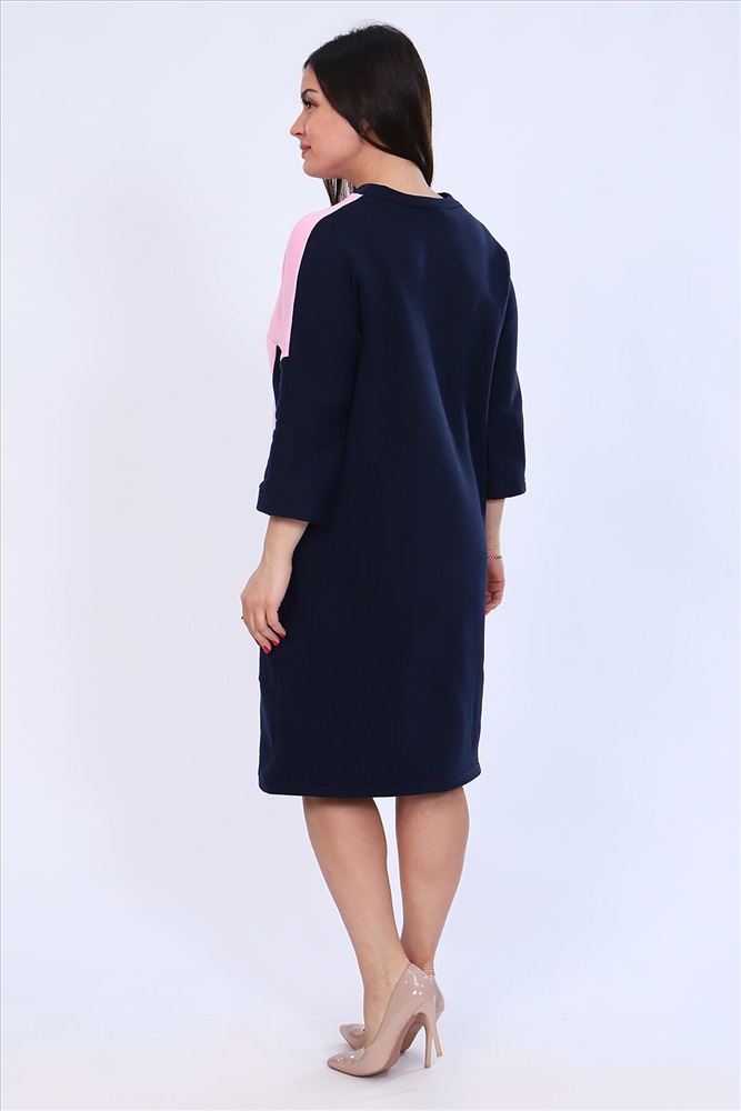 Платье женское комбинированное прямого силуэта, округлый воротник, спущенный рукав 3/4, длина рукава от шва. Удобно и практично.