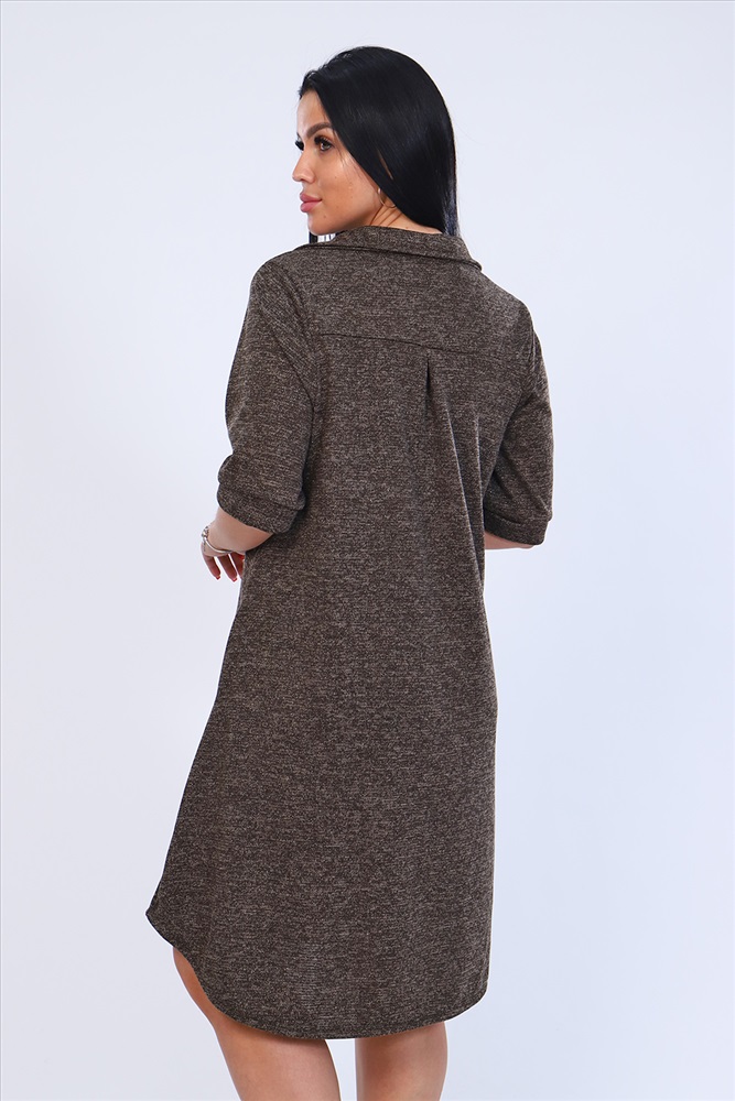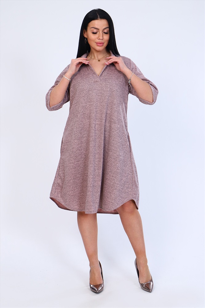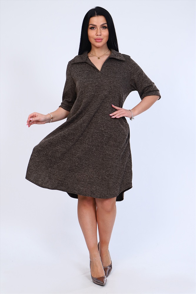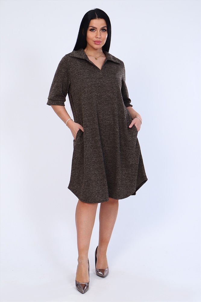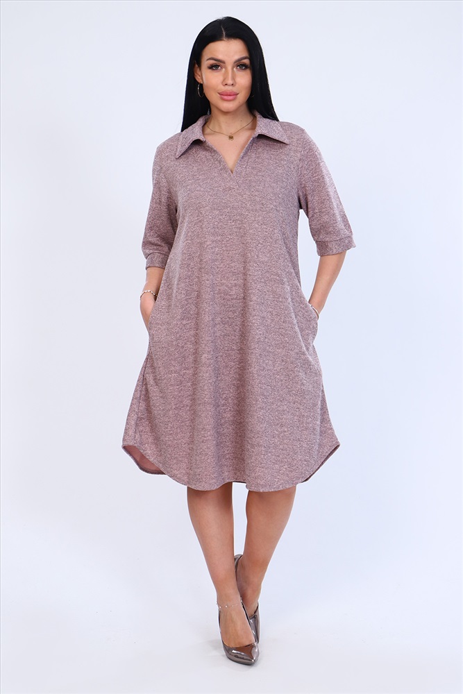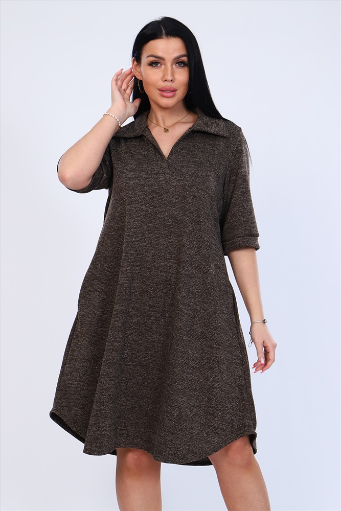 Сезонность: лето | осень | весна | зима Платье расклешенное ,свободного кроя,рукав 3/4,в боковых швах имеются карманы,воротник рубашечного типа.Практично и удобно.