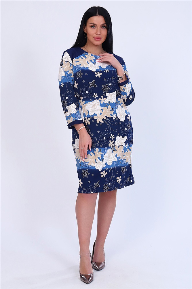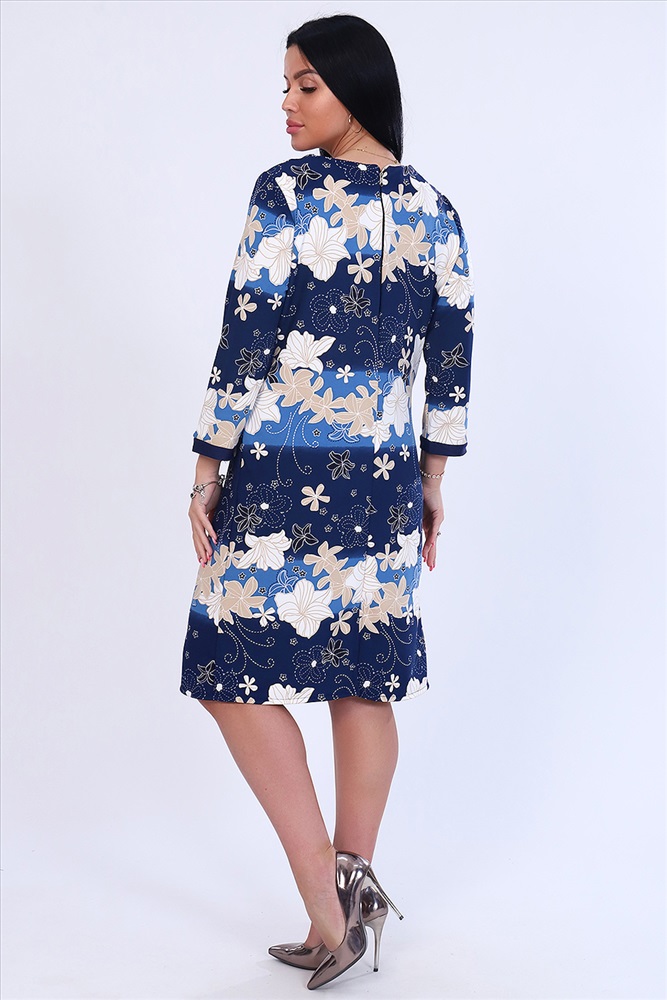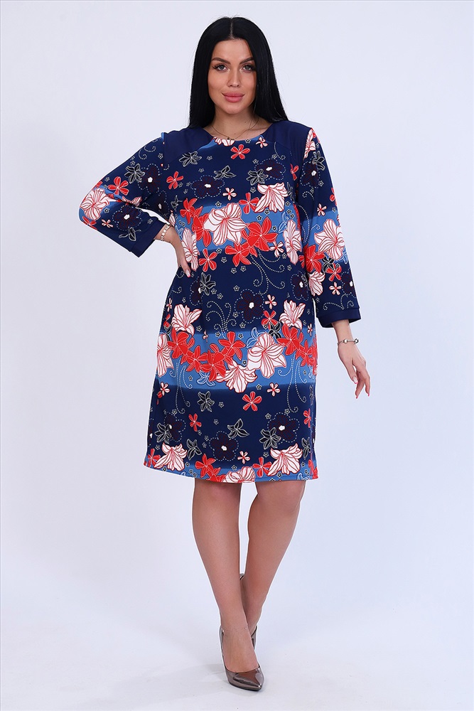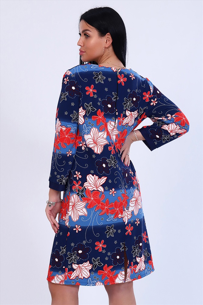Застежка: молния Платье женское прямого силуэта, округлый ворот, рукав 3/4 на манжете, на задней полочке разрез снизу. Застежка сзади на молнии. Легкое и удобное.