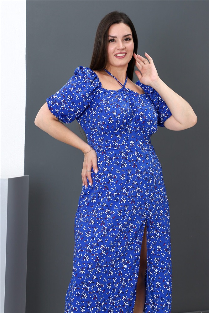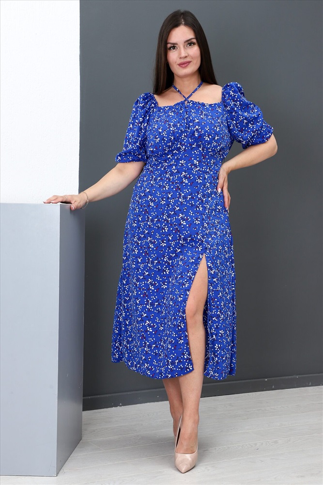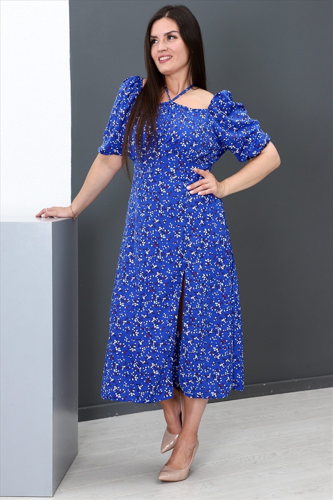 Страна производства: Россия Платье женское полуприталенного силуэта, короткий рукав, округлая горловина с декоративными завязками, на передней полочке разрез снизу. Вид застежки скрытая молния сбоку. Легкое и удобное.