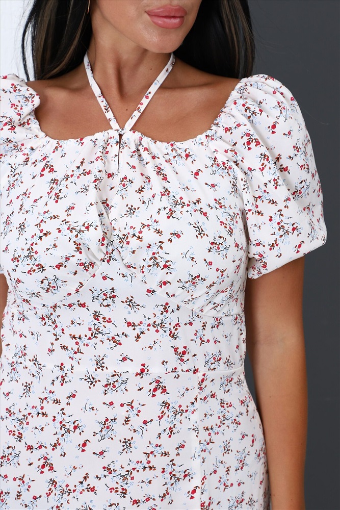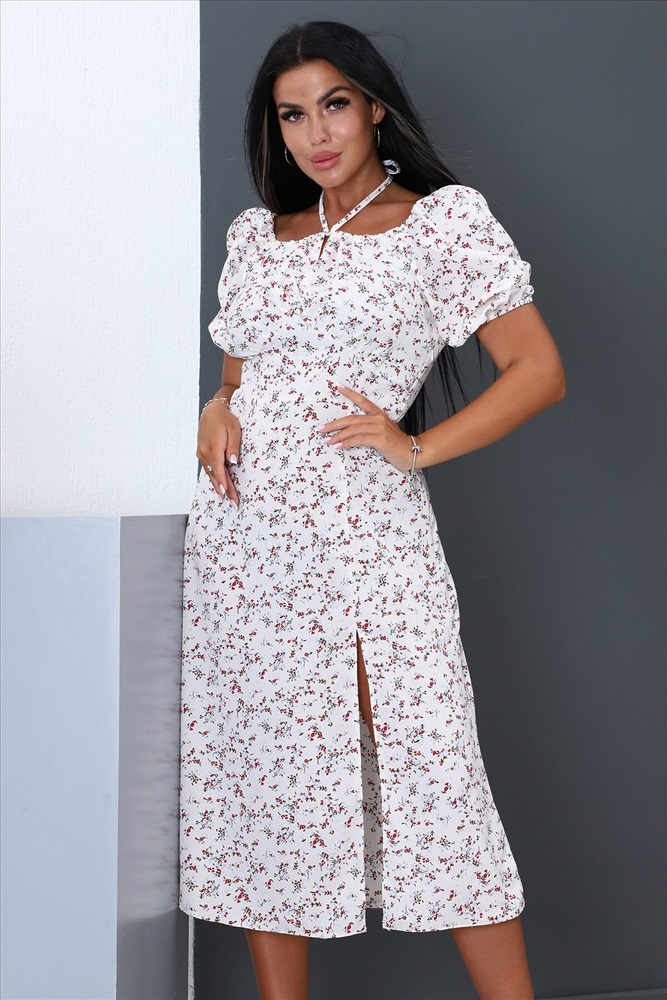 Страна производства: Россия Платье женское полуприталенного силуэта, короткий рукав, округлая горловина с декоративными завязками, на передней полочке разрез снизу. Вид застежки скрытая молния сбоку. Легкое и удобное.