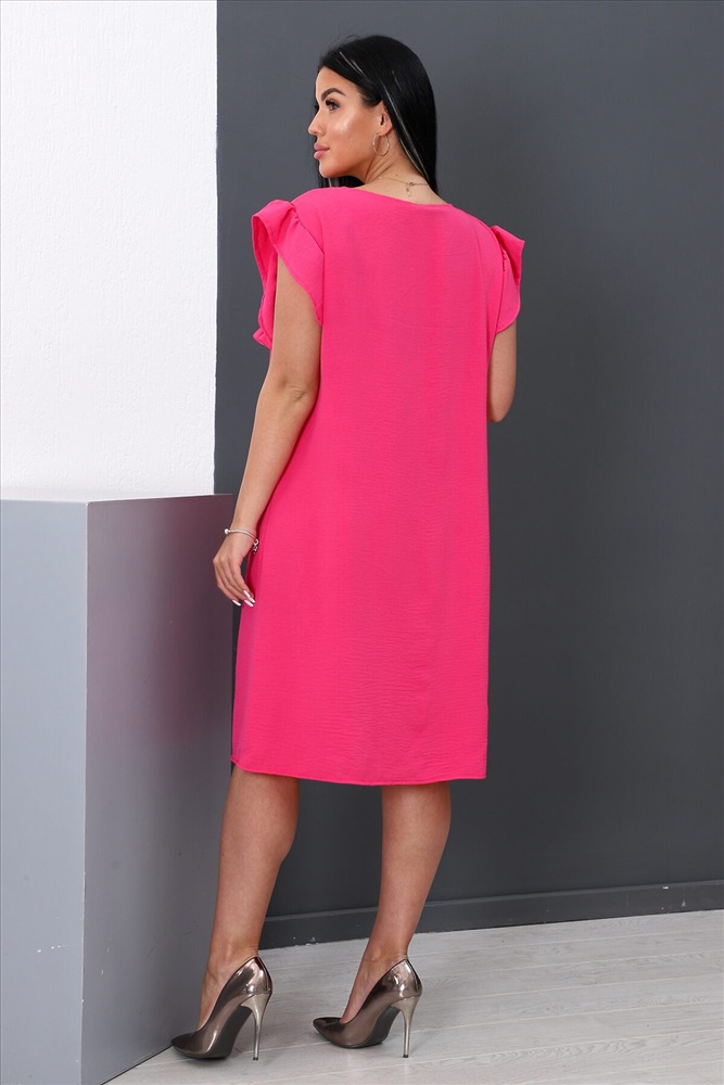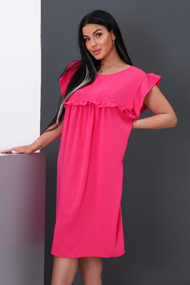 ID товара: 888264 Состав: 100% Полиэстер Сезон: Весна/Лето Длина: Ниже колена Фасон: Свободный крой Рукав: Крылышки Вырез горловины: Округлый Декоративные элементы: Рюши Основная ткань: Полиэстер | Софт Стиль: Повседневный Страна бренда: Россия Страна производства: Россия Платье женское прямого силуэта, короткий втачной рукав в виде оборки, округлый ворот, на передней полочке оборка на груди, на задней полочке сверху завязки. Легкое и удобное. Комментарии к товару