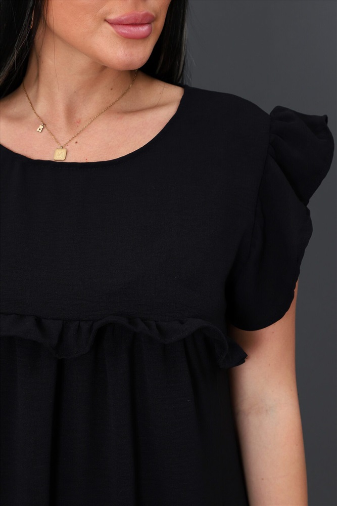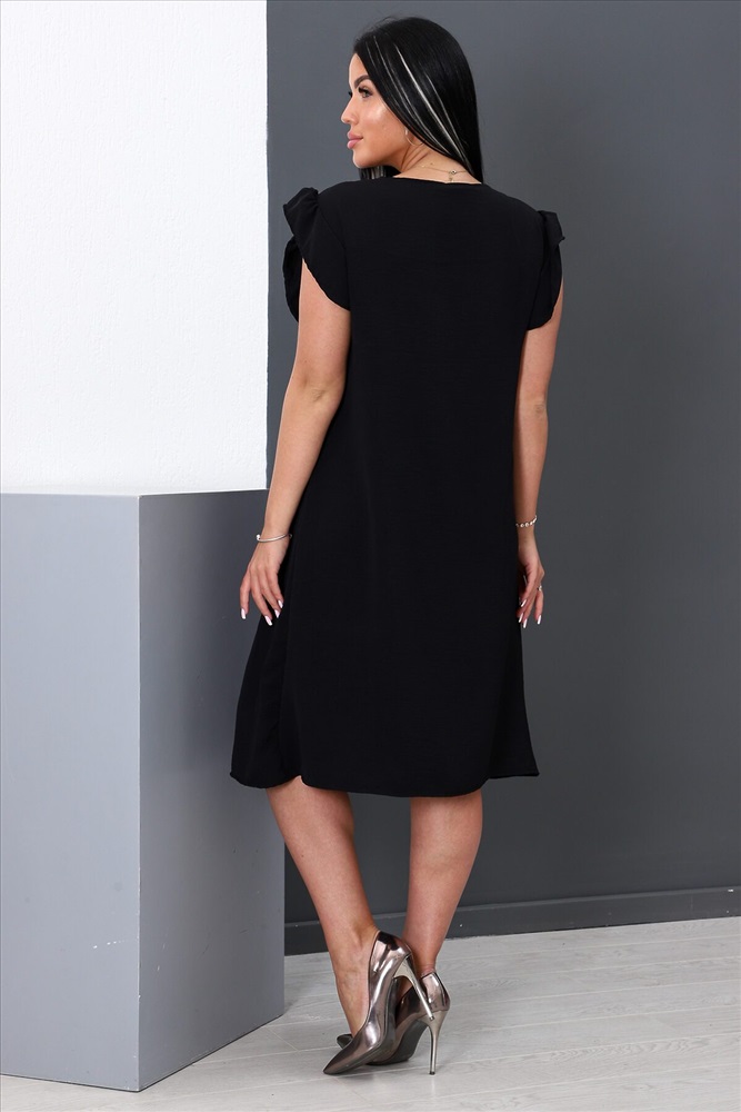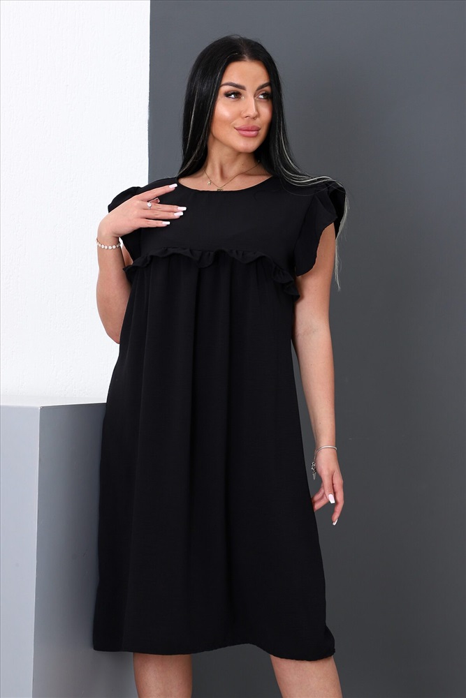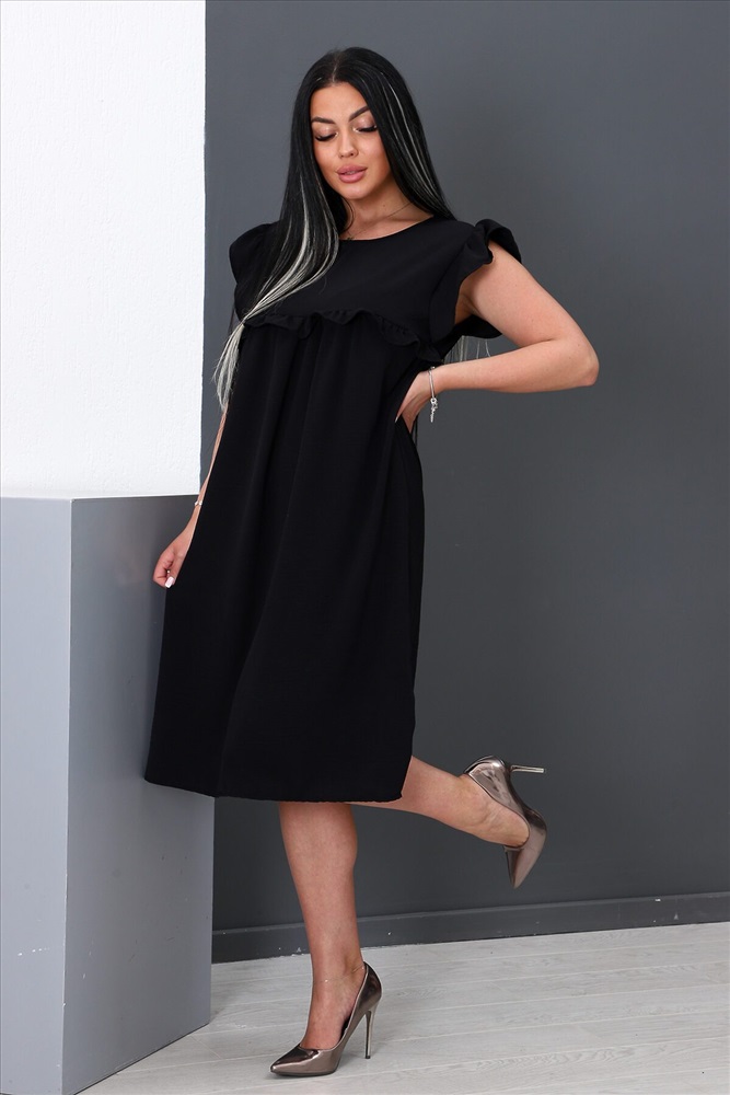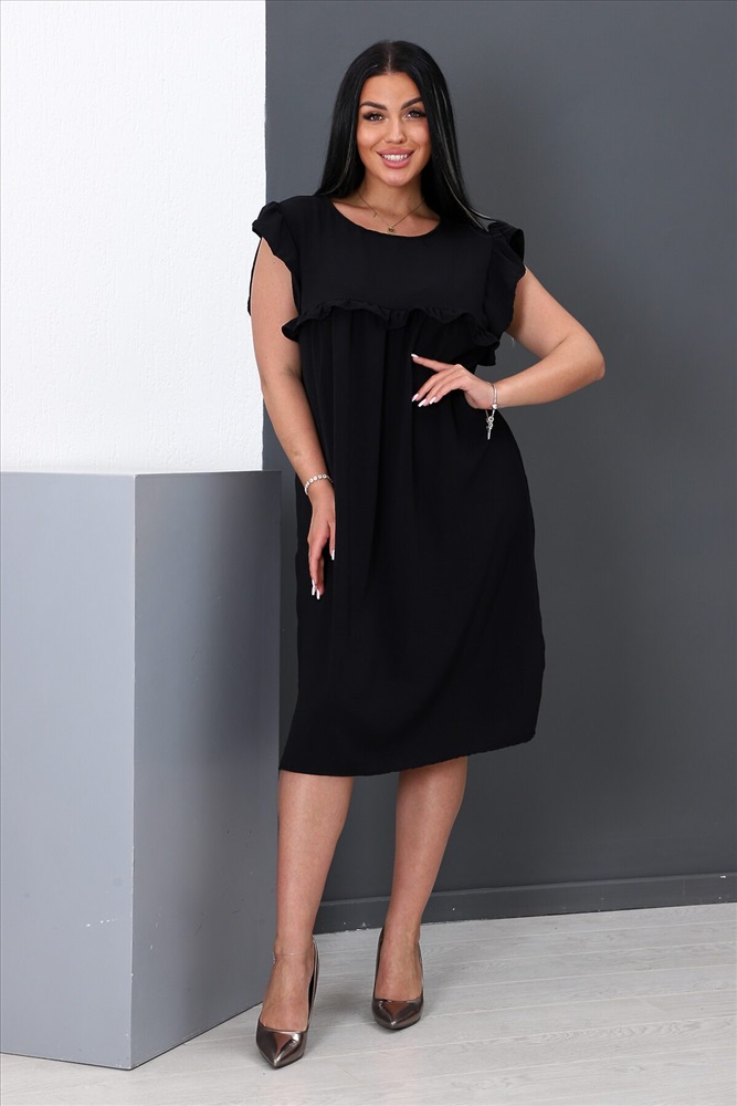 ID товара: 888265 Состав: 100% Полиэстер Сезон: Весна/Лето Длина: Ниже колена Фасон: Свободный крой Рукав: Крылышки Вырез горловины: Округлый Декоративные элементы: Рюши Основная ткань: Полиэстер | Софт Стиль: Повседневный Страна бренда: Россия Страна производства: Россия Платье женское прямого силуэта, короткий втачной рукав в виде оборки, округлый ворот, на передней полочке оборка на груди, на задней полочке сверху завязки. Легкое и удобное. Комментарии к товару