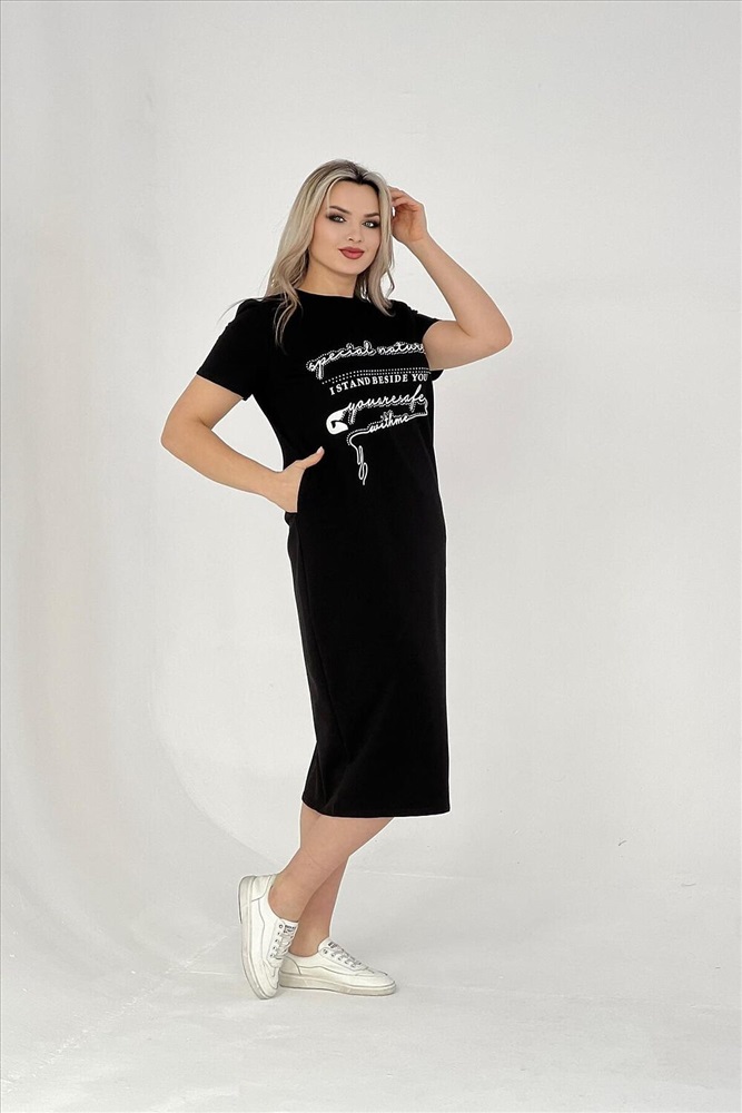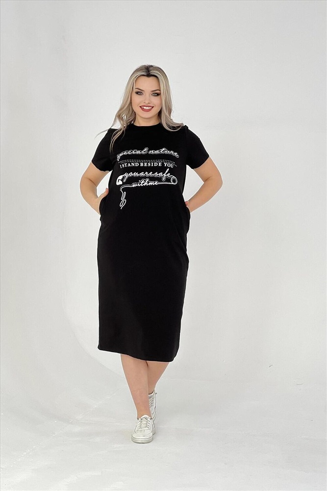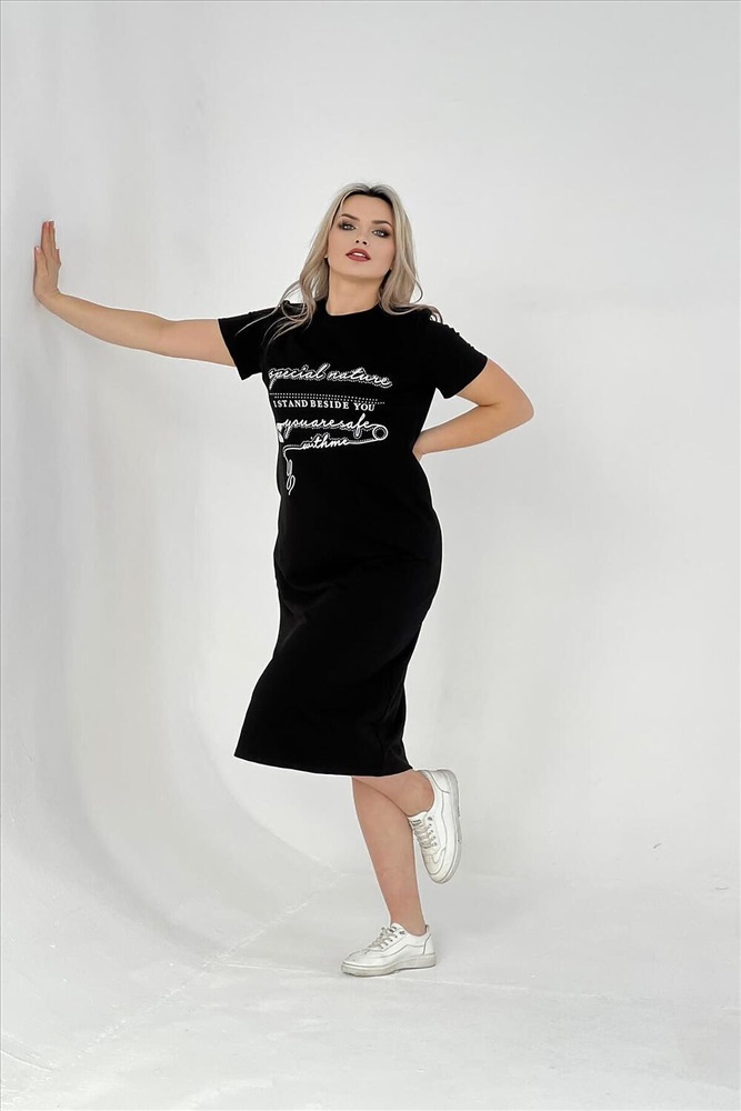 Страна производства: Россия Стильное женское платье подойдет для прогулок на свежем воздухе и для домашнего отдыха. Изготовлено из качественного трикотажа, оно идеально подойдет девушкам больших размеров. Платье выполнено в черном цвете и имеет свободный прямой крой, что делает его универсальным в использовании. Изготовленное из качественной турецкой ткани с добавлением лайкры, это платье хорошо тянется и не садится после стирки. Таким образом, вы можете быть уверены в сохранении его первоначального вида на протяжении всего периода носки. Спортивное платье-футболка также подойдет для полных женщин, так как обладает большими размерами. Оно органично сочетает в себе спортивный стиль и комфортную посадку. Благодаря свободному крою oversize, это домашне платье обеспечивает максимальный комфорт при повседневном использовании. Длинные модели летних платьев футболок подчеркнут ваш стиль и создадут ультрамодный образ. Женское платье больших размеров с коротким рукавом отличный выбор для лета или весны. Данное женское хлопковое платье из футера подойдет как для беременных женщин, так и для девушек любящих свободный крой в одежде. Стильное миди-платье с карманами это базовая модель одежды для дома или прогулок. В таком платье вы будете выглядеть свободно, элегантно и модно.