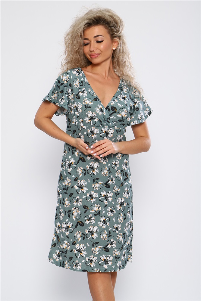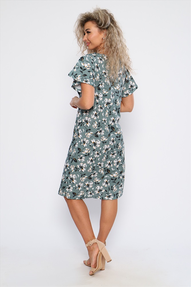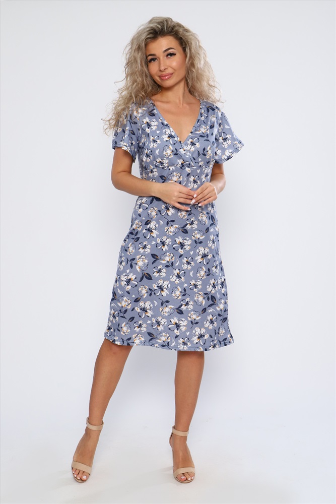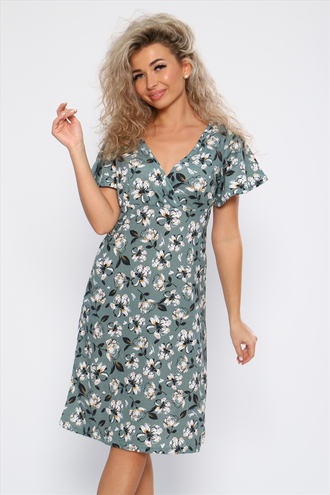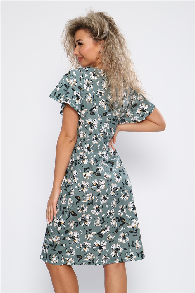 Застежка: без застежки Платье полуприлегающего силуэта с короткими рукавами - крылышками и V - образным вырезом горловины. Необходимый элемент гардероба для легких образов.