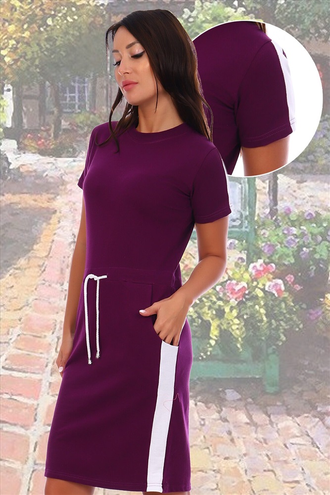 Страна производства: Россия Платье спортивного покроя из ткани лакоста (пике) с заниженой по талии кулисой со шнуром. Контрастная отделка на рукавах и по низу юбки. Ткань устойчива к деформации. Платье подходит для дома и отдыха.