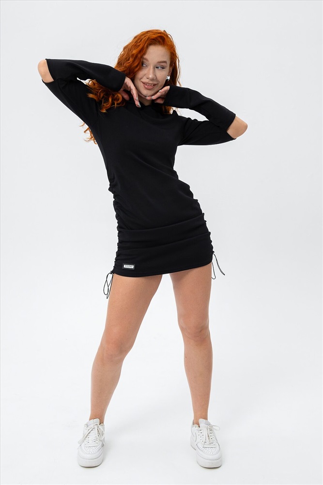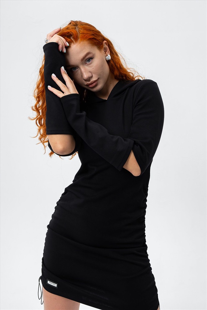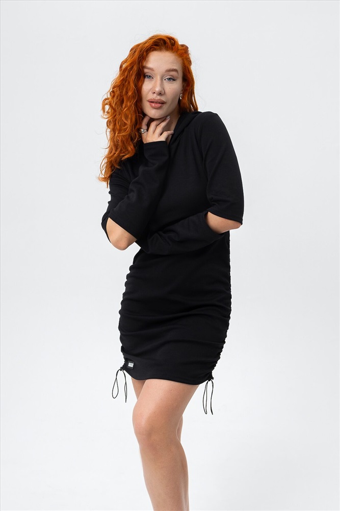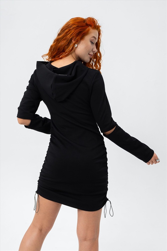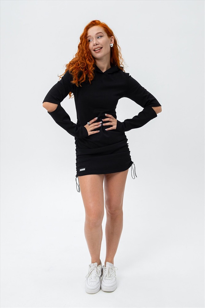 ID товара: 1018551 Состав: 70% Хлопок, 25% Полиэстер, 5% Эластан Сезон: Весна/Лето Длина: Короткая Фасон: Облегающий Рукав: Длинный Вырез горловины: Капюшон Вид ткани: Интерлок Страна бренда: Россия Страна производства: Россия Женское спортивное платье выполнено из интерлока. Платье с капюшоном. На рукавах в районе локтей выполнены разрезы. Нашивки на капюшоне и внизу платья. Боковины собраны на регулирующийся шнурок. Комментарии к товару