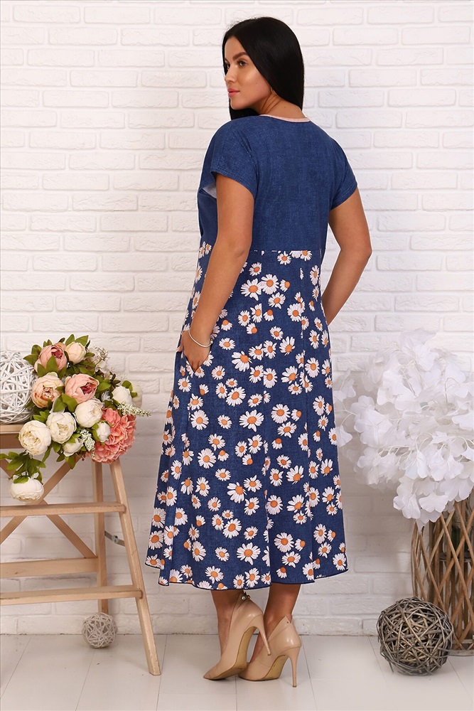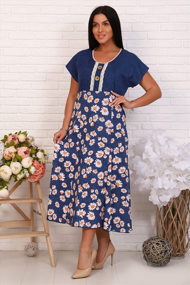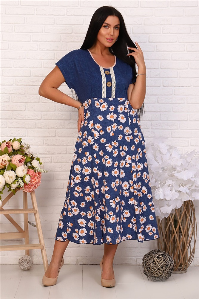 ID товара: 659572 Состав: 100% Хлопок Сезон: Весна/Лето Длина: Длинное Фасон: Расклешенное Рукав: Короткий Вырез горловины: Круглый Основная ткань: Хлопок | Кулирка Стиль: Повседневный Страна бренда: Россия Страна производства: Россия Платье женское из ткани кулирка 100% хлопок. Платье со спущенным рукавом, кокетка однотонная. Отделка на планке натуральным кружевом с двумя пуговицами "кокос". Низ расклешен, платье удлиненное. Для повседневной носки, дома и отдыха. Сохраняет цвет и форму после стирки. Фасон очень комфортный Комментарии к товару