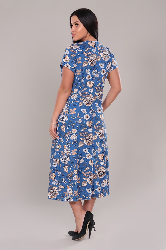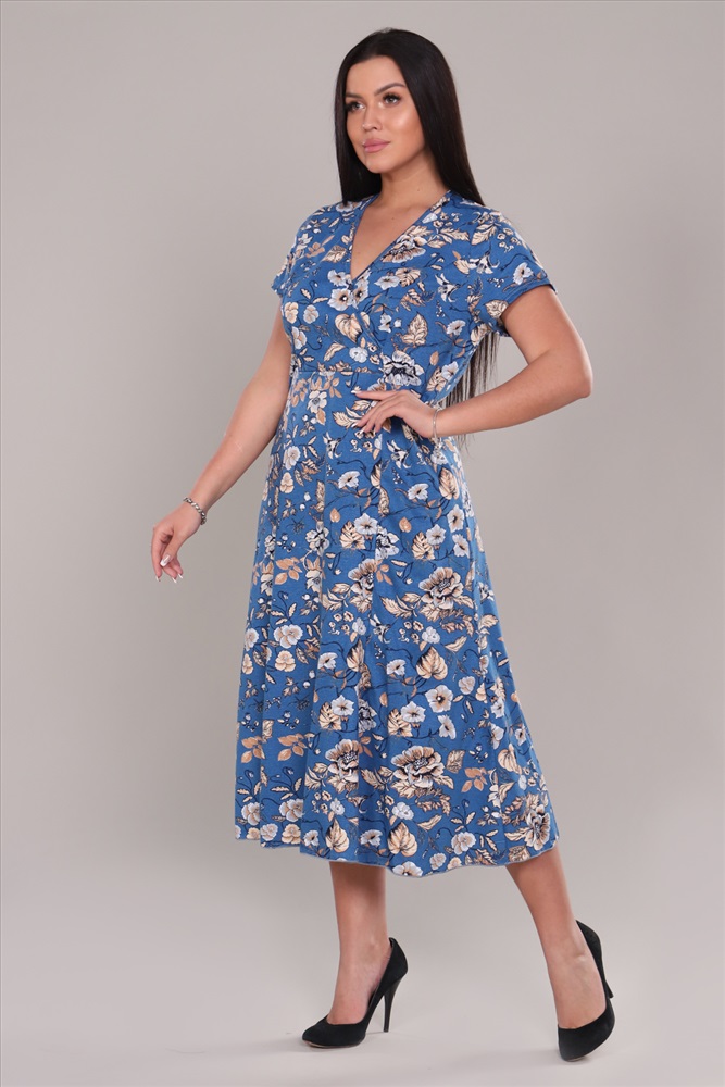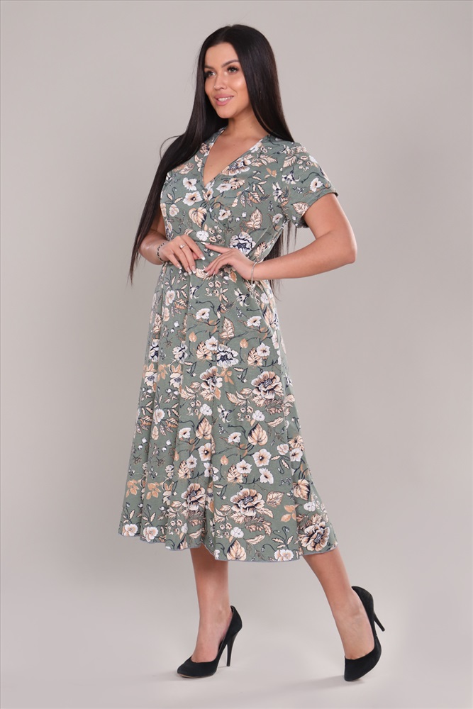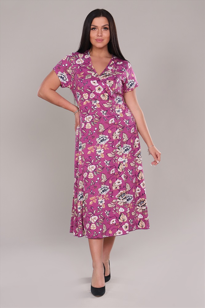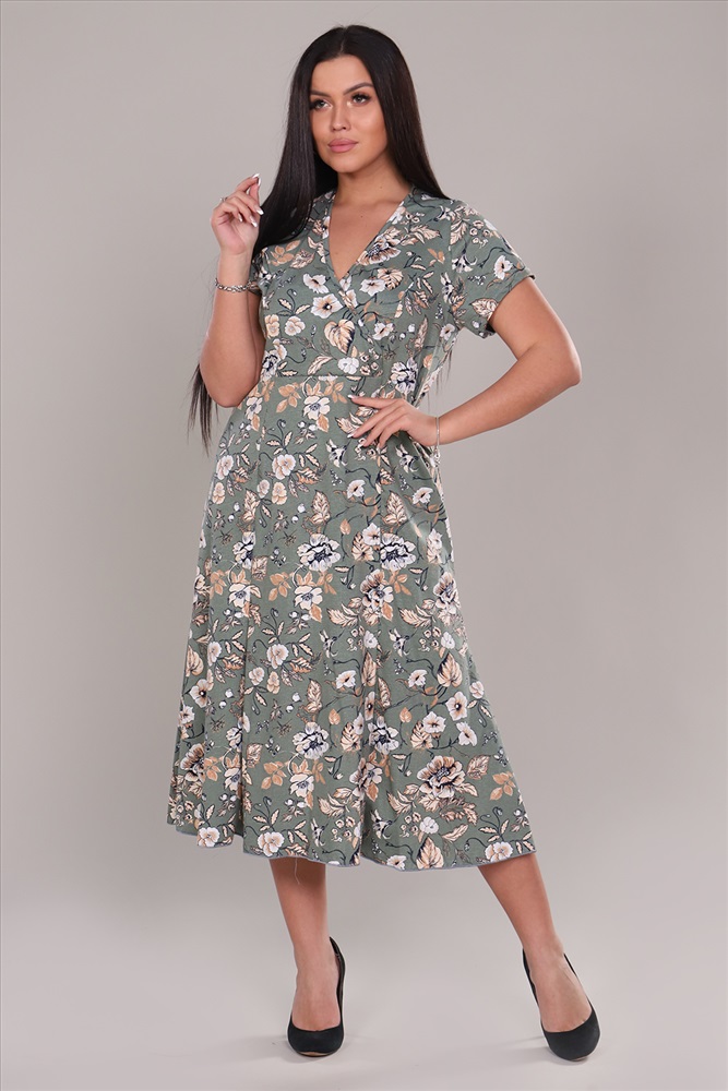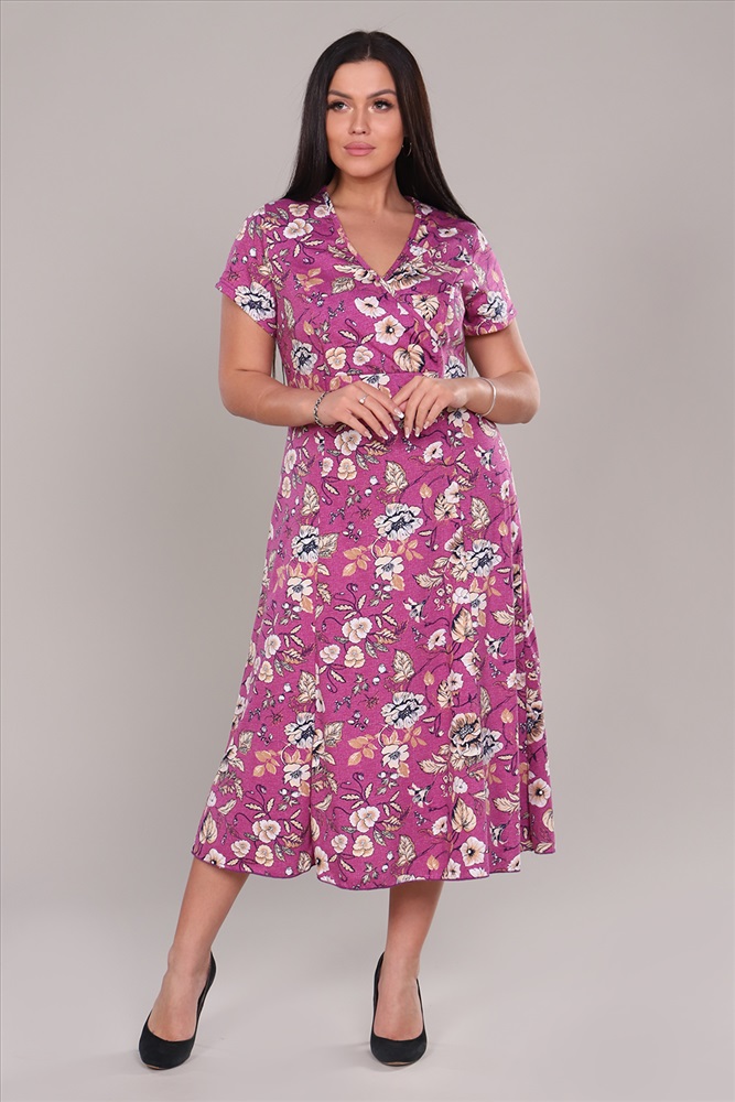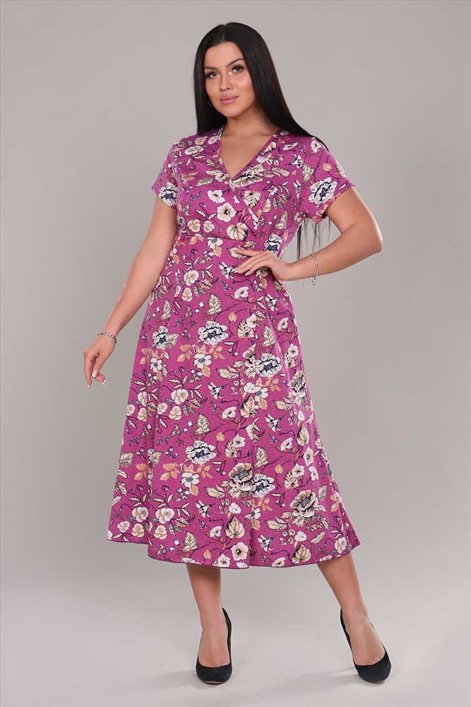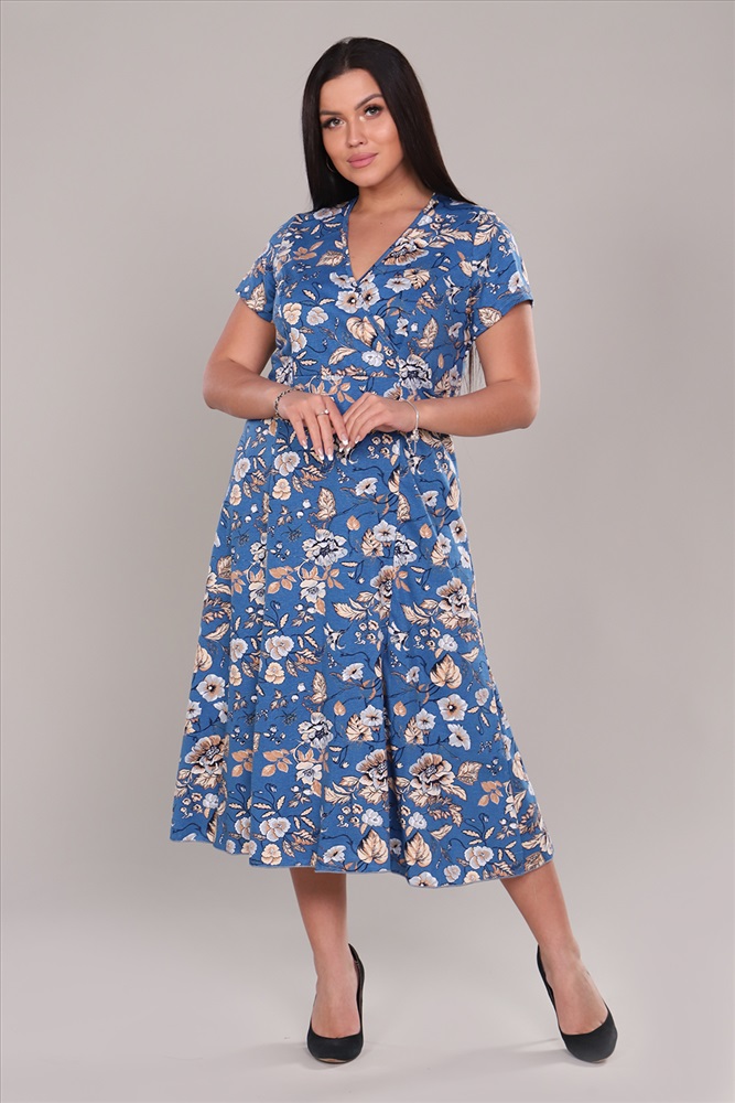 Застежка: без застежки Платье женское очень красивой и оригинальной расцветки выполнено из ткани хлопок. Платье удлиненное, приталенное, с расклешением к низу. Вырез платья V-образный за счет запаха на полочке, что придает изделию элегантность и комфорт. Модель подойдет для прогулок, отдыха и дома.