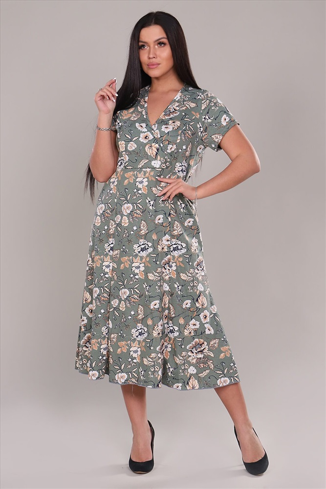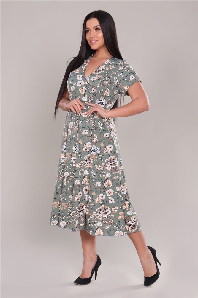 ID товара: 765319 Состав: Хлопок 100% Сезон: Весна/Лето Длина: Удлиненная Фасон: Полуприлегающий Рукав: Короткие Вырез горловины: V-образный Рисунок: цветочный Декоративные элементы: Принт Основная ткань: Хлопок | Кулирка Стиль: Повседневный Страна бренда: Россия Страна производства: Россия Платье женское очень красивой и оригинальной расцветки выполнено из ткани хлопок. Платье удлиненное, приталенное, с расклешением к низу. Вырез платья V-образный за счет запаха на полочке, что придает изделию элегантность и комфорт. Модель подойдет для прогулок, отдыха и дома. Комментарии к товару