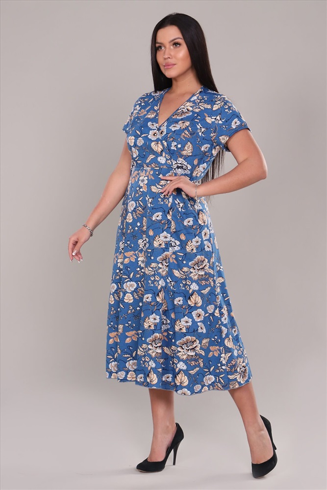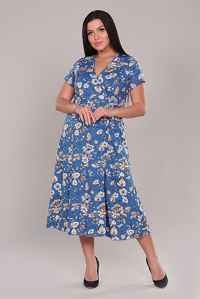 ID товара: 765321 Состав: Хлопок 100% Сезон: Весна/Лето Длина: Миди Фасон: Полуприлегающий Рукав: Короткие Вырез горловины: V-образный Рисунок: цветочный Декоративные элементы: Принт Основная ткань: Хлопок | Кулирка Стиль: Повседневный Страна бренда: Россия Страна производства: Россия Платье женское очень красивой и оригинальной расцветки выполнено из ткани хлопок. Платье удлиненное, приталенное, с расклешением к низу. Вырез платья V-образный за счет запаха на полочке, что придает изделию элегантность и комфорт. Модель подойдет для прогулок, отдыха и дома. Комментарии к товару