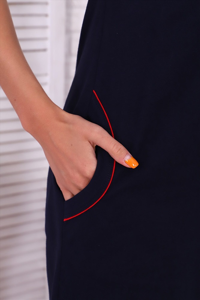 ID товара: 877097 Состав: 100% Хлопок Сезон: Демисезон Длина: Миди Фасон: Прямое Рукав: короткие Вырез горловины: Округлый Основная ткань: Кулирка Стиль: Повседневный Страна бренда: Россия Страна производства: Россия Женское платье полуприлегающего силуэта. Выполнено из однотонного высококачественного трикотажного полотна - кулирки, 100% хлопок. Горловина, низ рукава и карман отделаны широкой окантовочной красной беей. Удобный приятный к телу, не стесняет движения. Стойкие цвета ткани, яркий принт. Для дома, для дачи, для отдыха, в отпуск, на море. Комментарии к товару