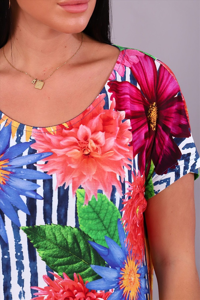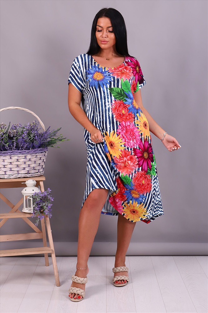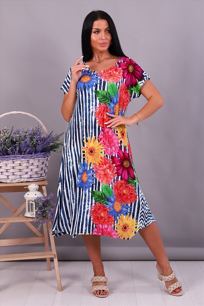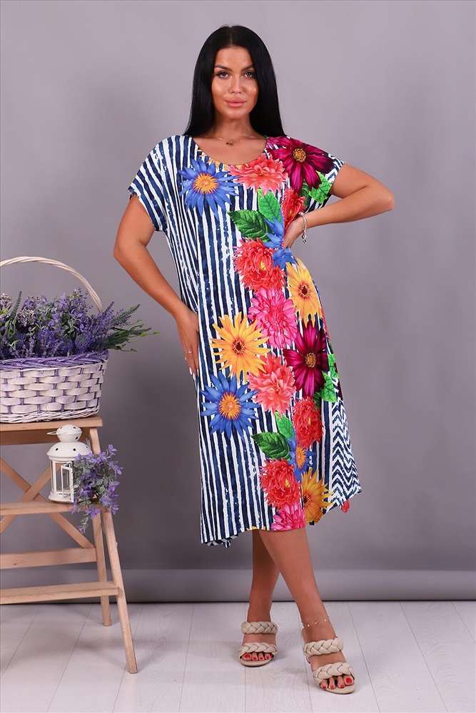 Производитель: НАТАЛИ ID товара: 876706 Состав: 94% Вискоза, 6% Эластан Сезон: Весна/Лето Длина: Ниже колена Фасон: Свободный крой Рукав: короткие Вырез горловины: Округлый Рисунок: полоска, цветочный Декоративные элементы: Принт Основная ткань: Вискоза Стиль: повседневный Страна бренда: Россия Страна производства: Россия