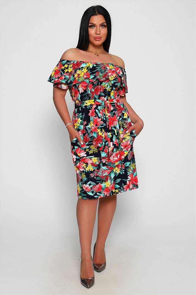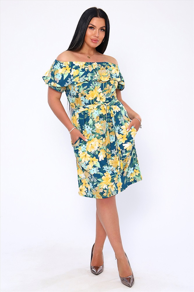 Застежка: без застежки Женское платье - сарафан полуприлегающего силуэта с поясом и широкой рюшью на плечах. Выполнен в романтическом стиле из трикотажного полотна, 100% хлопок. Горловина собрана на резинку и отделана широкой оборкой. Короткий рукав, реглан. Длина пояса в 44 размере 155 см, в 62 размере 180 см. Широкий размерный ряд с 44 до 62 размера. Яркие весенне-летние расцветки с принтом по ткани в виде клетки. Карманы в боковом шве, добавляют дополнительный комфорт при носке. Платье можно носить, как со спущенным с плеч верхом, так и с поднятым, либо на одно плечо. Прекрасно подходит беременным, так как пояс не фиксируется на изделии и может приталить платье на любом уровне. В этом нарядном и удобном платье, Вы будете себя чувствовать комфортно в любой обстановке: на прогулке, дома, в отпуске, на пляже, на даче и на любом празднике.