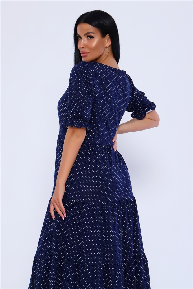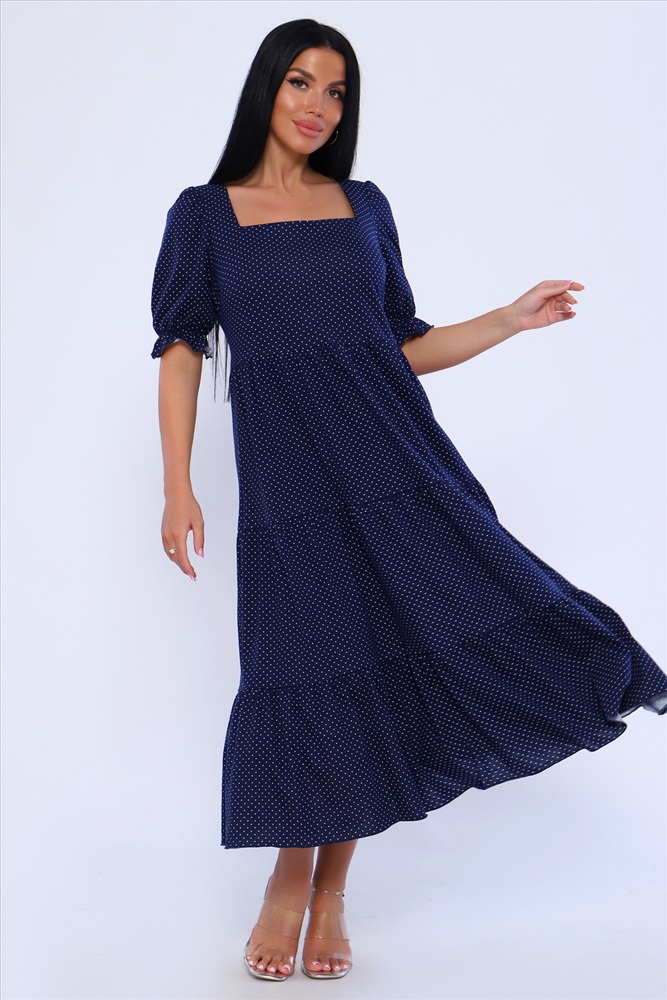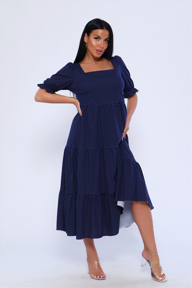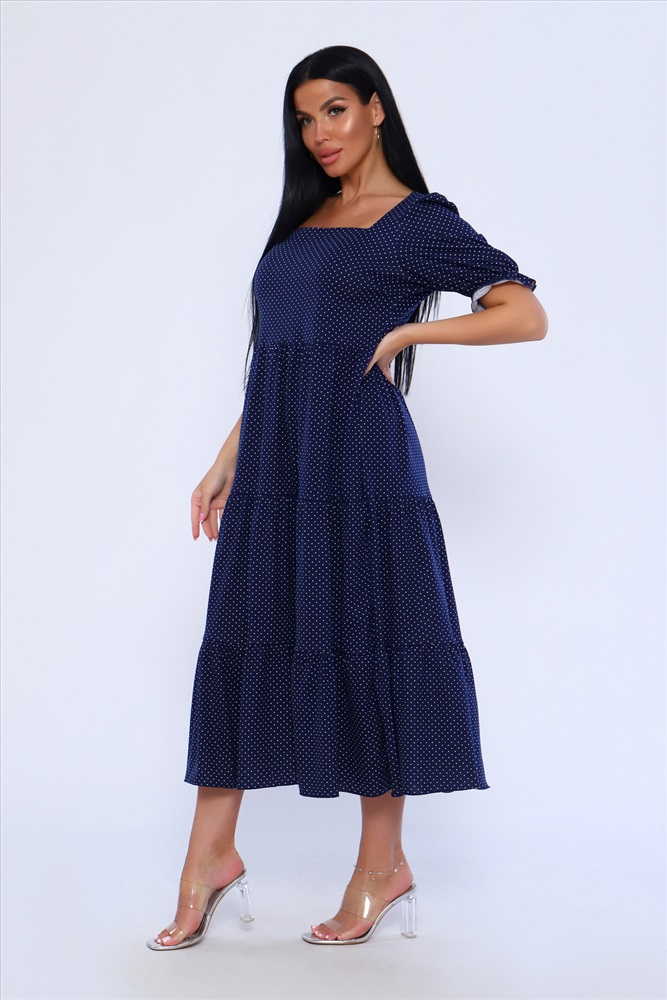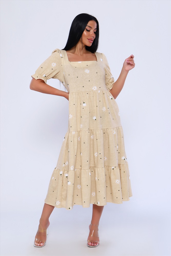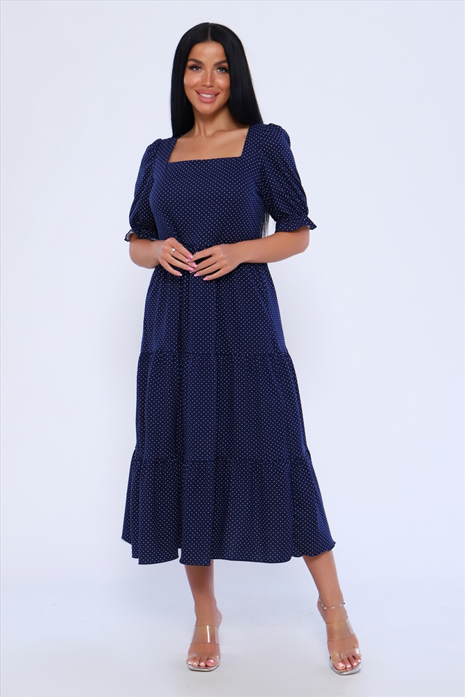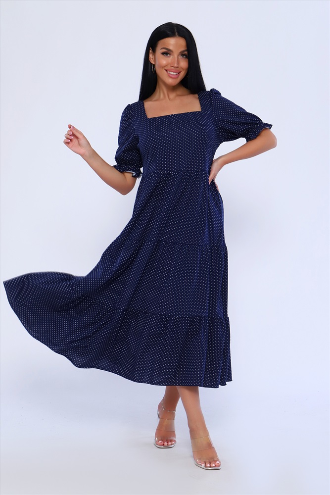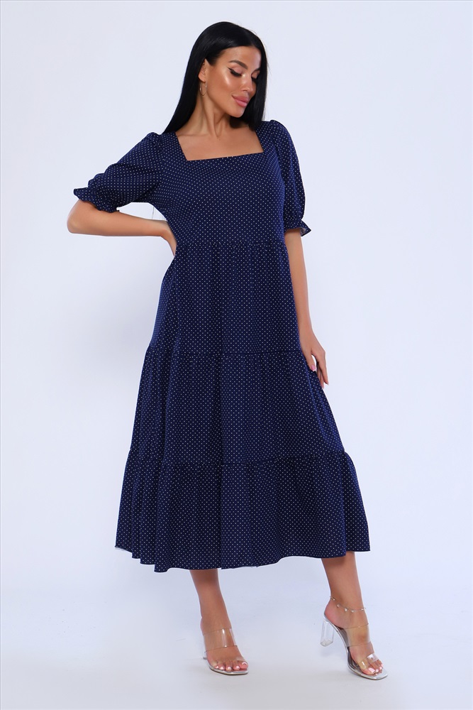 Застежка: без застежки Легкое и дышащее летнее платье из хлопка. Платье в длине миди с пышными рукавами и квадратным вырезом подчетркивает декольте и визуально удлинняет шею. Платье А-силуэта состоит из нескольких соединенных рядов-ярусов, линия талии платья чуть завышена. Модель не сковывает движения и комфортно садится по фигуре. Оно универсально и может быть использовано как вечернее, так и повседневное платье. На моделе представлен 46 размер. Параметры модели 165 см,97-71-101