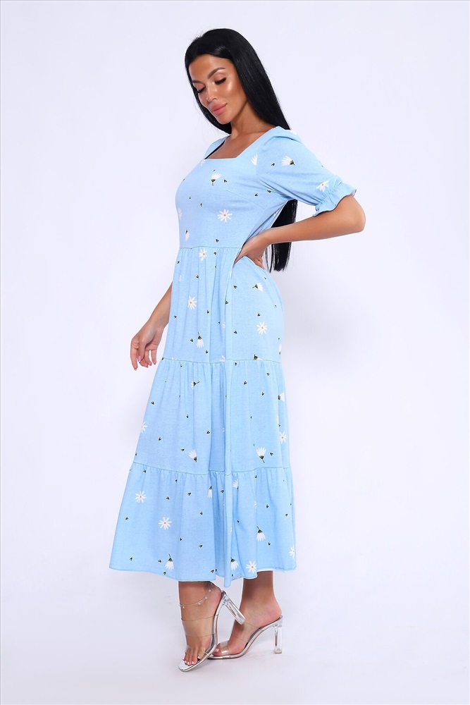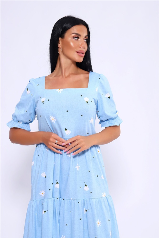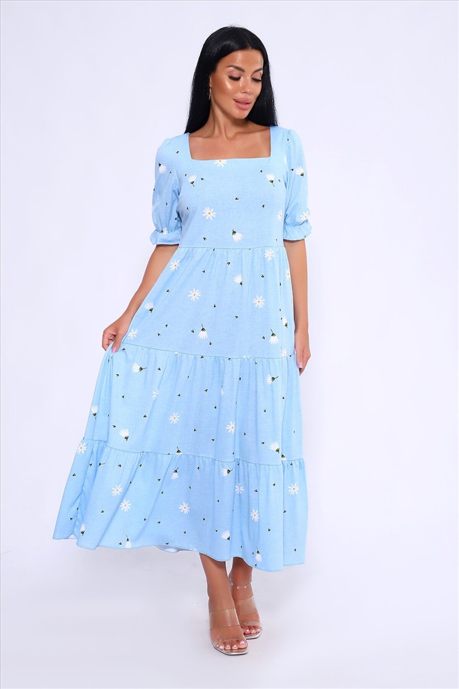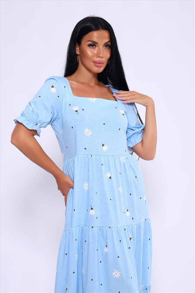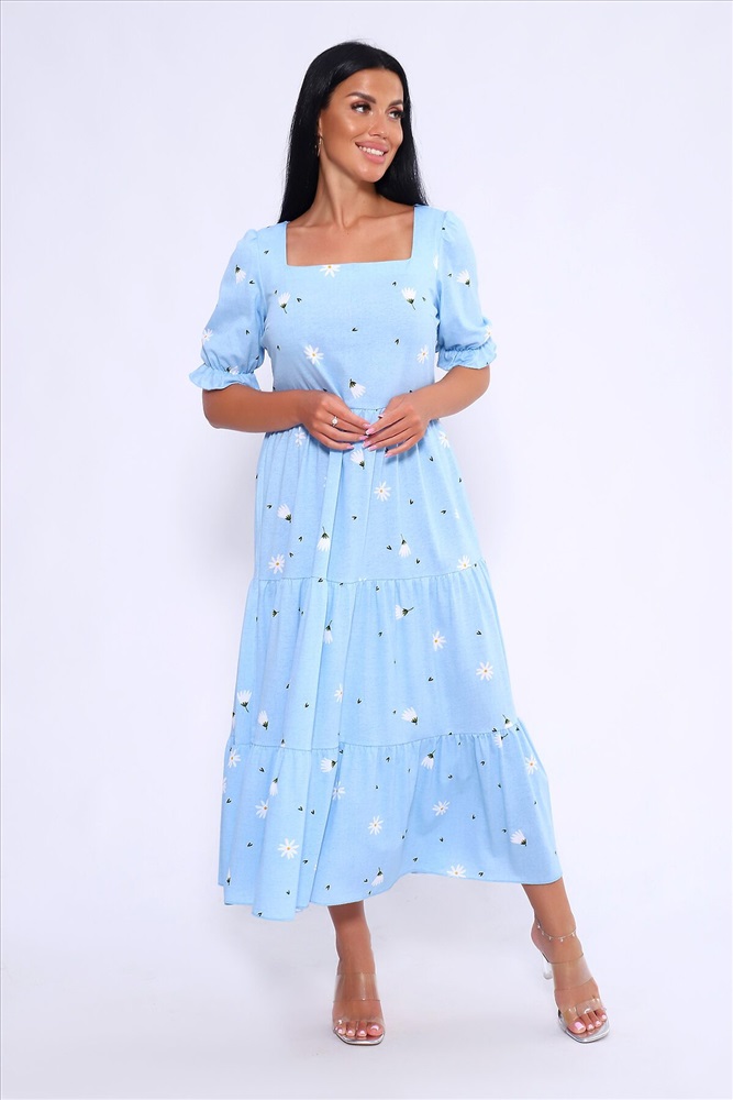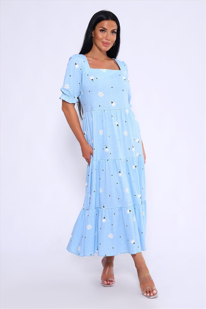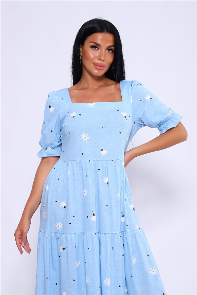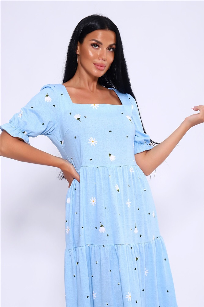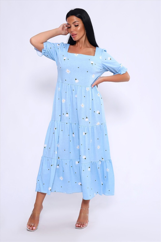 ID товара: 1023031 Состав: 100% Хлопок Сезон: Весна/Лето Длина: Макси Фасон: А-силуэт Рукав: короткие Вырез горловины: Каре Рисунок: цветочный Декоративные элементы: Принт Основная ткань: Хлопок Стиль: Романтический Вид ткани: Кулирка Страна бренда: Россия Страна производства: Россия Легкое и дышащее летнее платье из хлопка. Платье в длине миди с пышными рукавами и квадратным вырезом подчетркивает декольте и визуально удлинняет шею. Платье А-силуэта состоит из нескольких соединенных рядов-ярусов, линия талии платья чуть завышена. Модель не сковывает движения и комфортно садится по фигуре. Оно универсально и может быть использовано как вечернее, так и повседневное платье. На модели представлен 46 размер. Параметры модели 165 см,97-71-101 Комментарии к товару