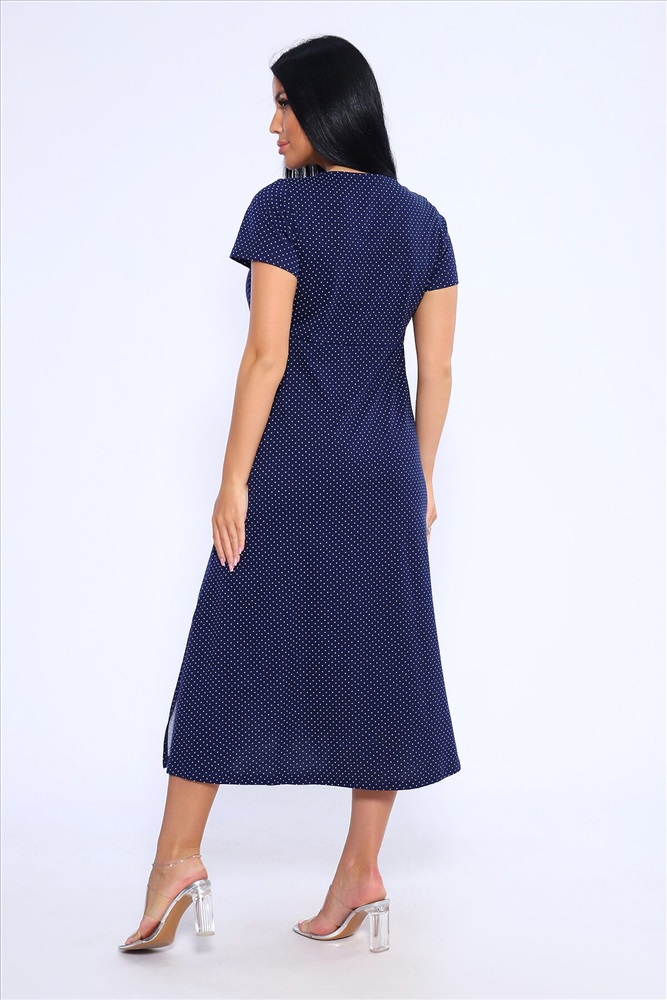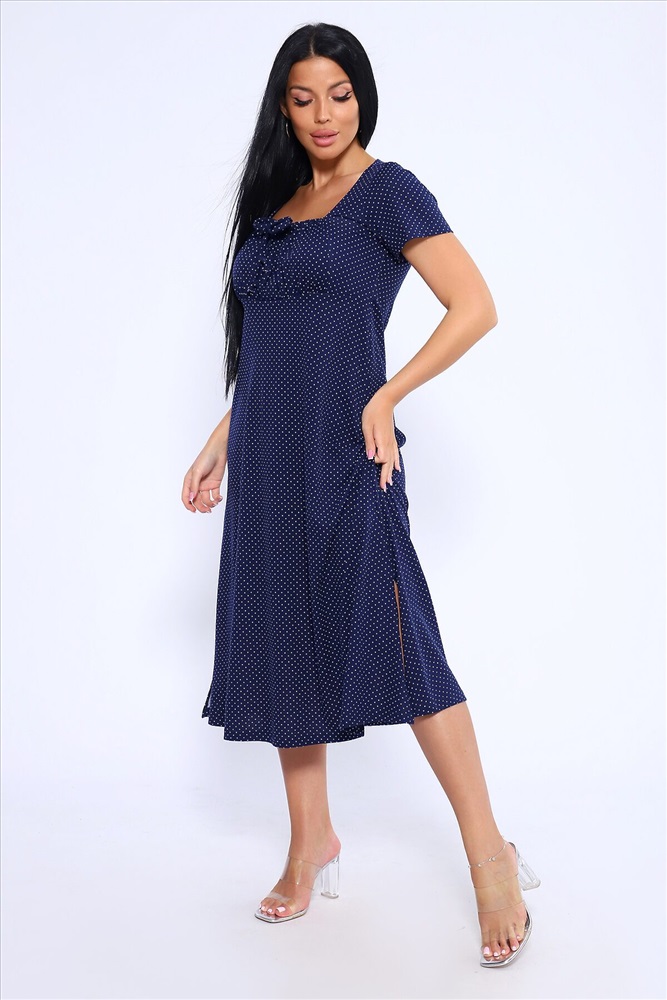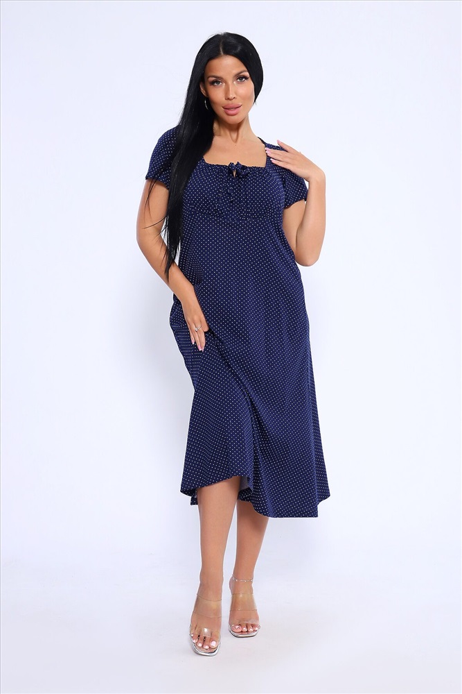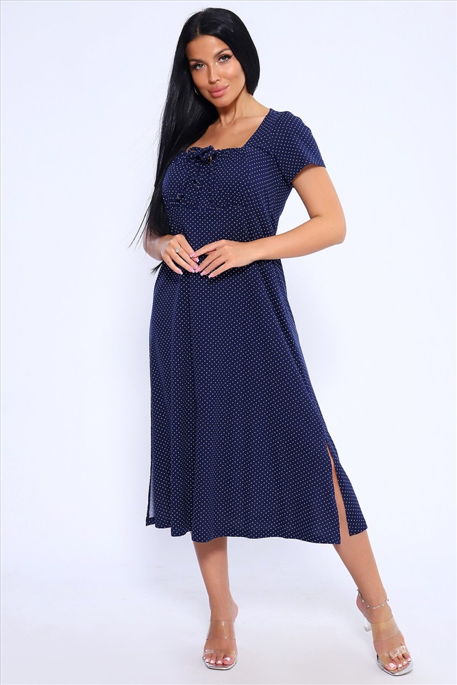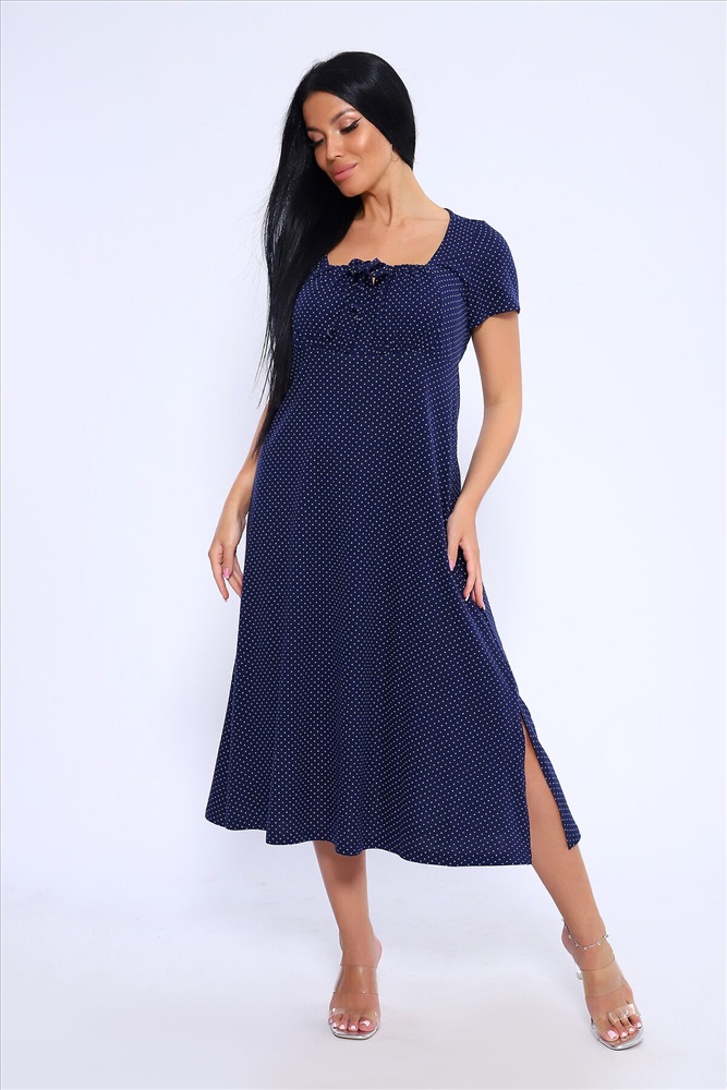 Длинное романтичное платье с короткими рукавами, декорировано квадратным вырезом декольте с завязками на груди. Милое, воздушное платье ниже колена с разрезами по боковым швам. Платье имеет свободный крой А-силуэта, который подходит для разного типа фигуры. Модель подойдет для прогулок, отдыха на пляже. Параметры модели 165 см,97-71-101 На модели представлен 46 размер.