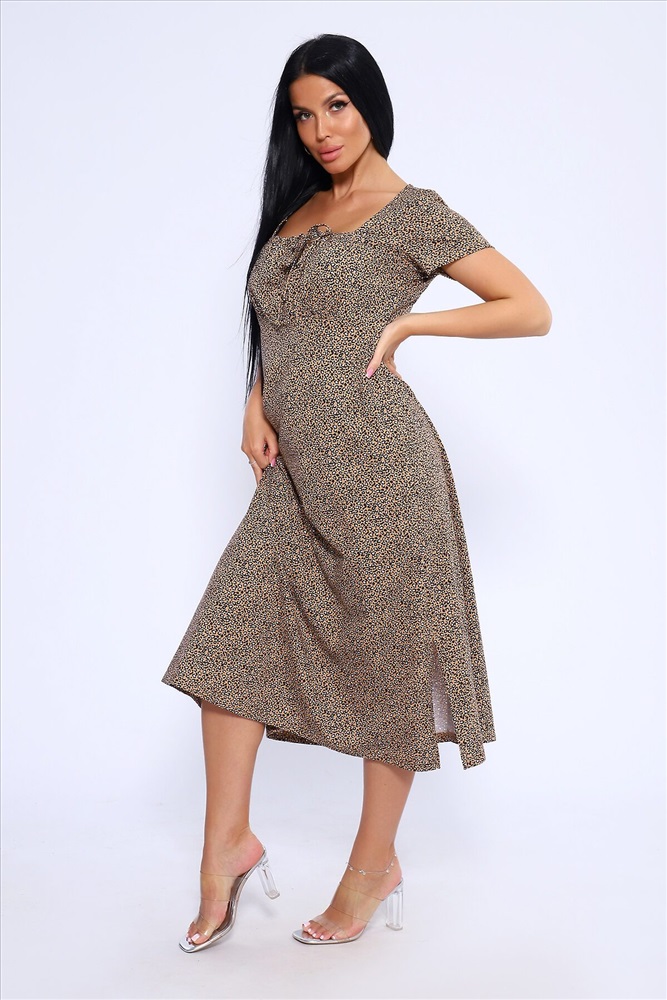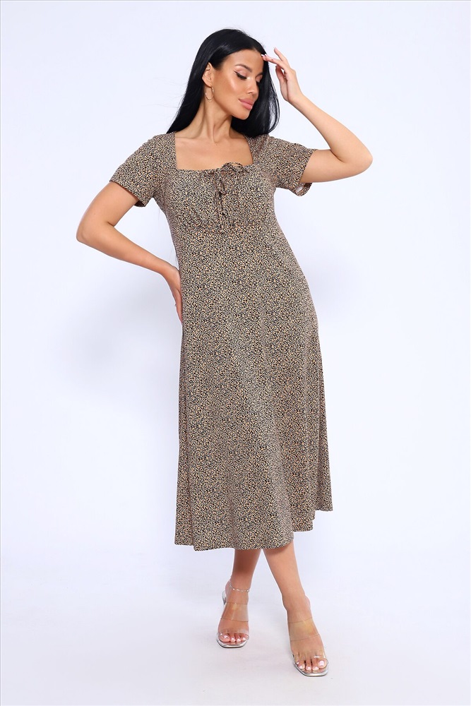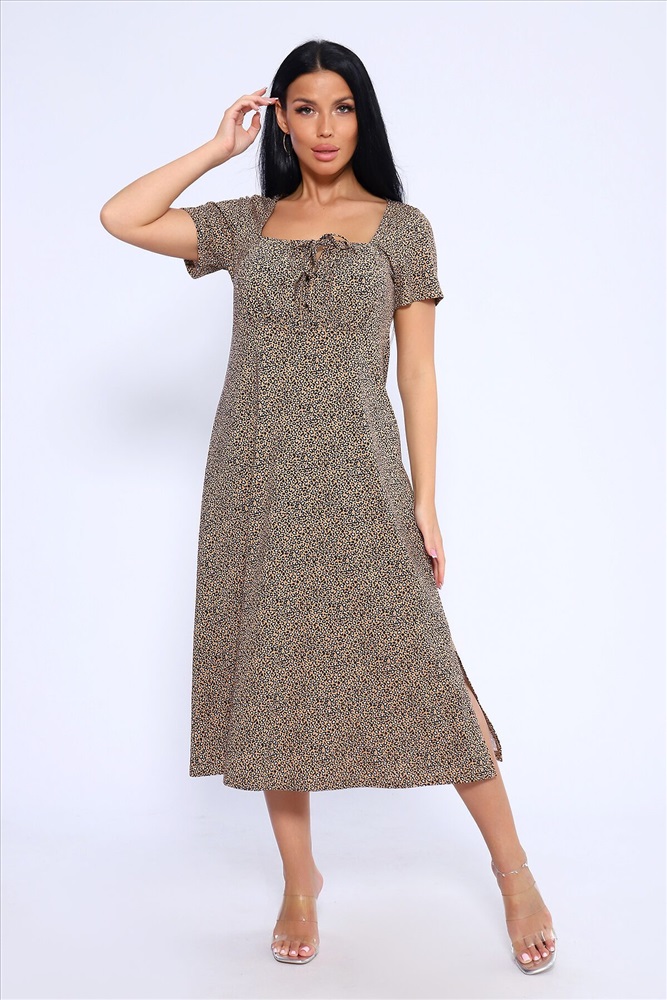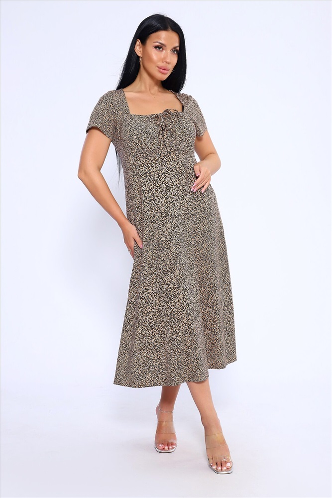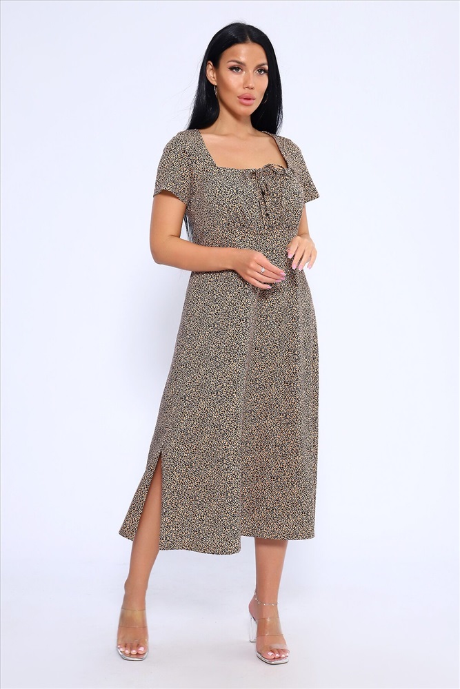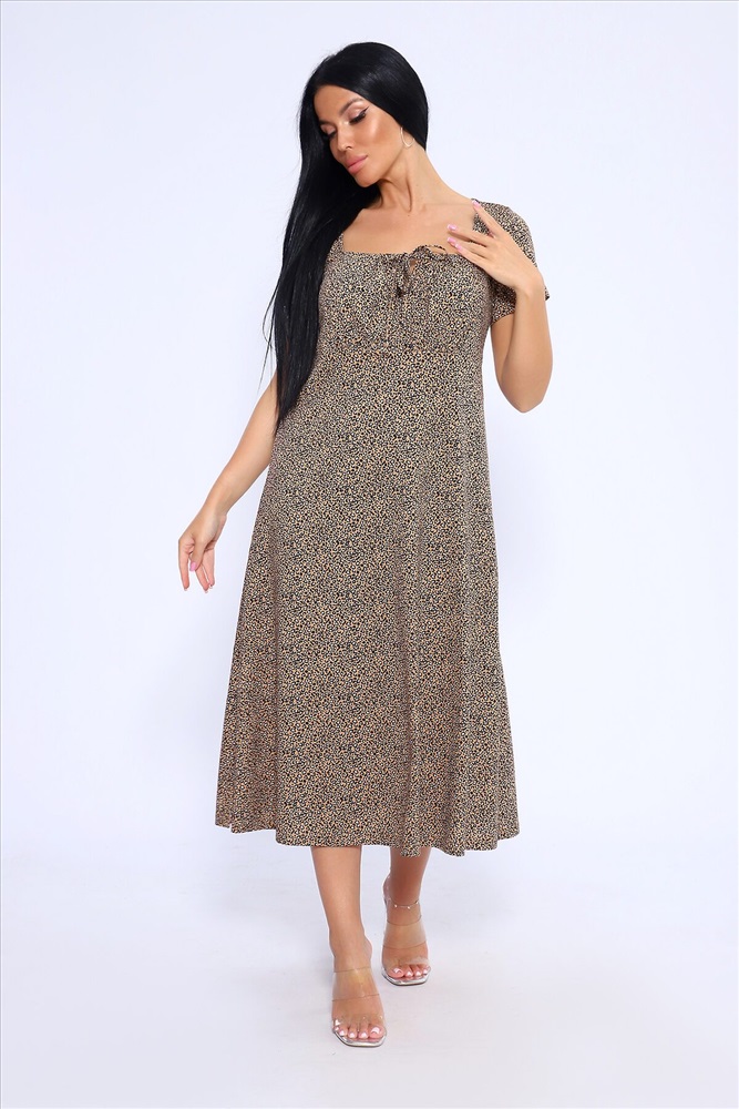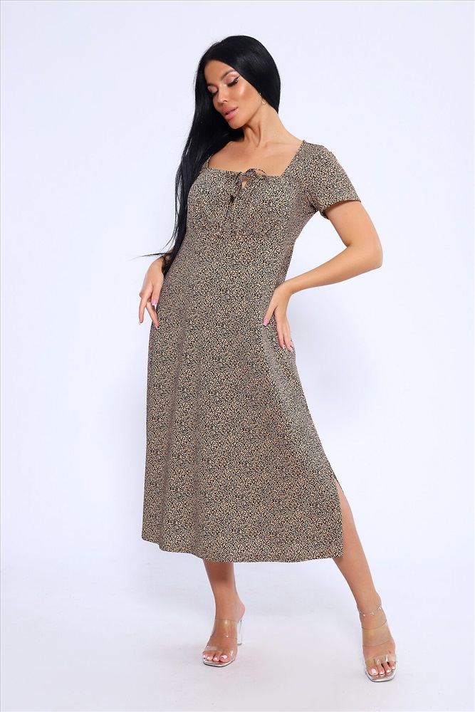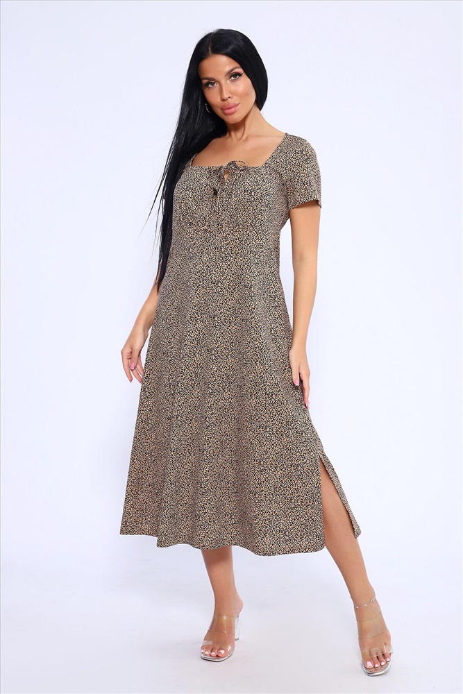 Длинное романтичное платье с короткими рукавами, декорировано квадратным вырезом декольте с завязками на груди. Милое, воздушное платье ниже колена с разрезами по боковым швам. Платье имеет свободный крой А-силуэта, который подходит для разного типа фигуры. Модель подойдет для прогулок, отдыха на пляже. Параметры модели 165 см,97-71-101 На модели представлен 46 размер.