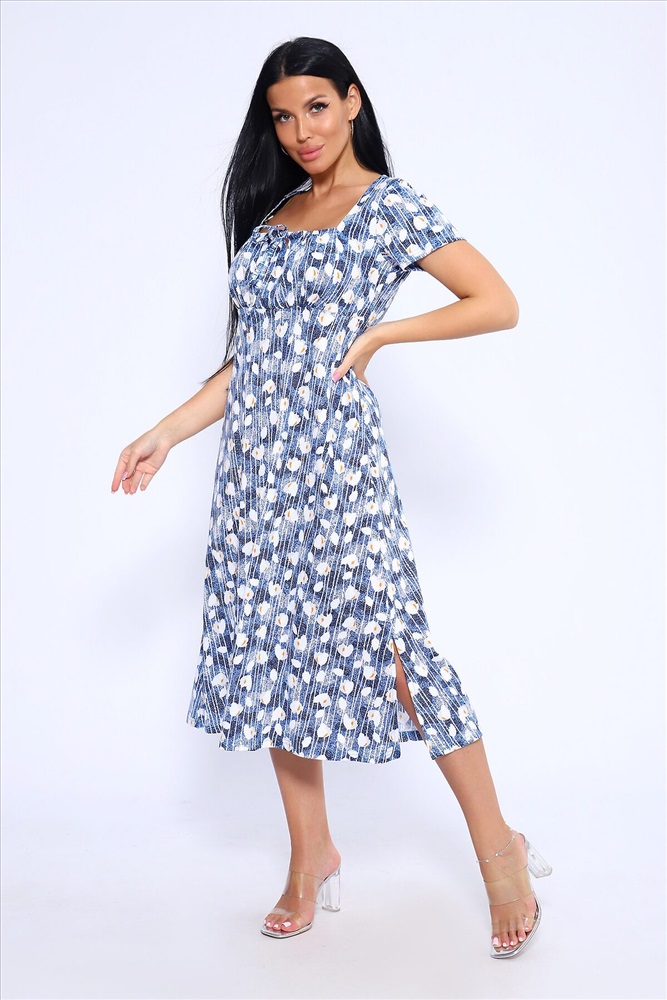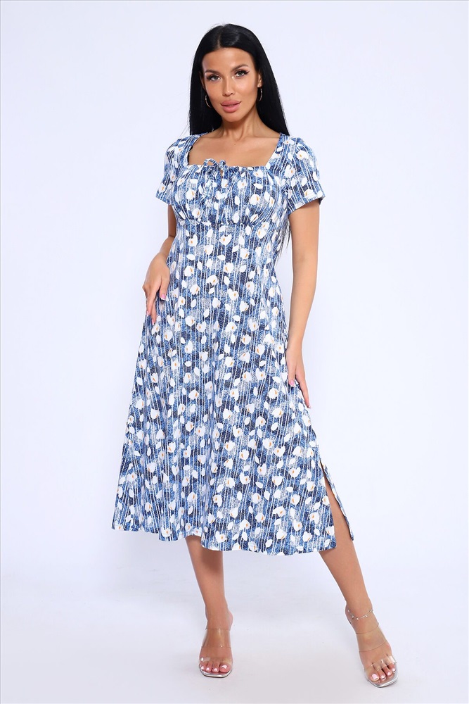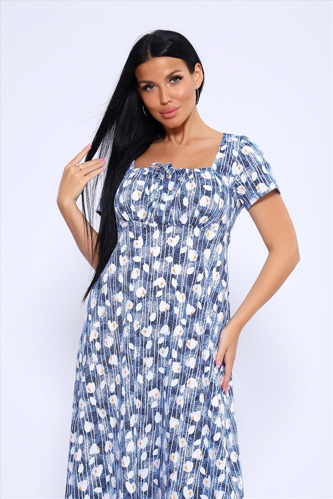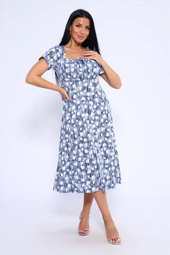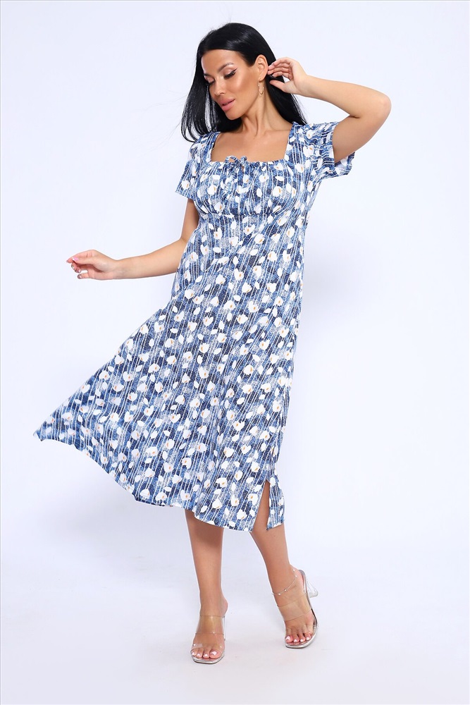 Длинное романтичное платье с короткими рукавами, декорировано квадратным вырезом декольте с завязками на груди. Милое, воздушное платье ниже колена с разрезами по боковым швам. Платье имеет свободный крой А-силуэта, который подходит для разного типа фигуры. Модель подойдет для прогулок, отдыха на пляже. Параметры модели 165 см,97-71-101 На модели представлен 46 размер.