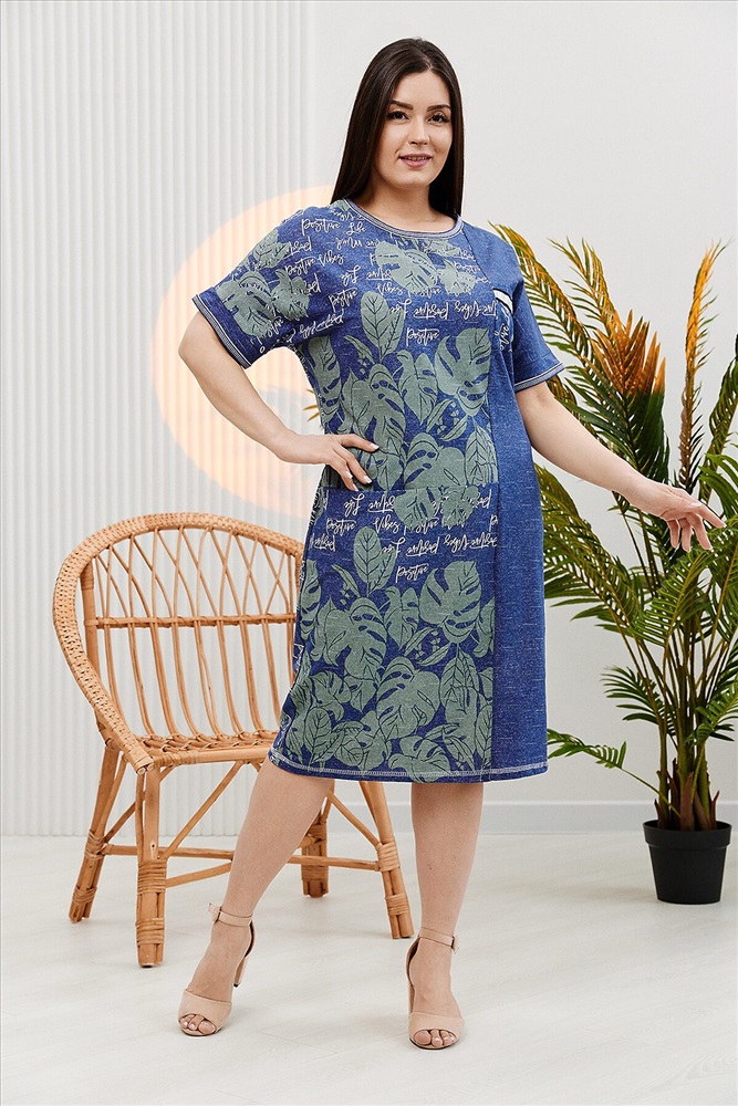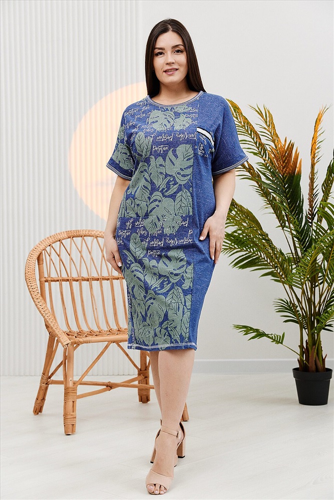 ID товара: 865545 Состав: Хлопок 100%; Хлопок 70%, Полиэстер 30% Сезон: Весна/Лето Длина: Миди Фасон: Полуприлегающий Рукав: Короткие Вырез горловины: Округлый Рисунок: растительный Декоративные элементы: Тесьма Основная ткань: Хлопок | Кулирка Стиль: Повседневный Страна бренда: Россия Страна производства: Россия Платье женское полуприлегающего силуэта, рукав цельнокроенный короткий. Полочка состоит из трех частей. Левая боковая часть из контрастной отделочной ткани, сверху расположен нагрудный карман с настроченной на него тесьмой. С правой стороны полочки в горизонтальном шве внутренний карман. Круглый вырез горловины и манжеты рукава окантованы бейкой из отделочной ткани и белым кантом. Комментарии к товару