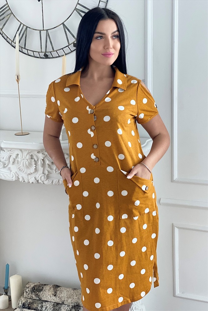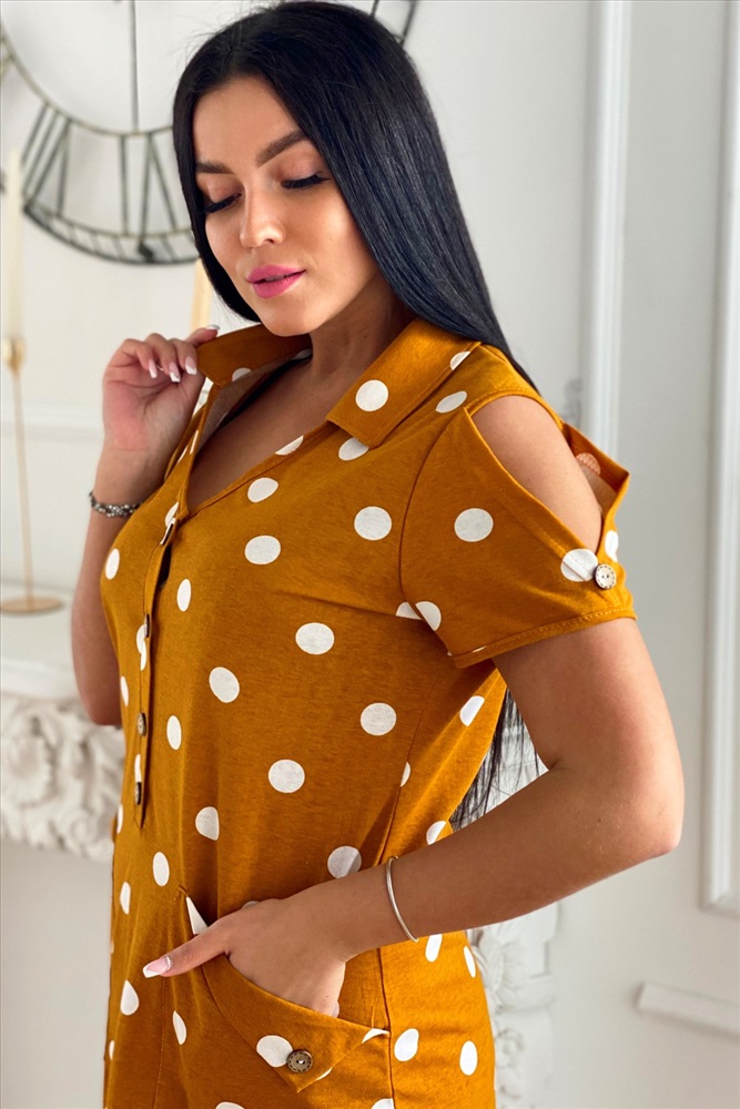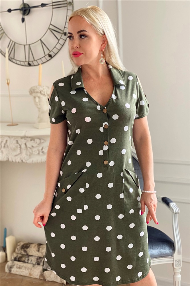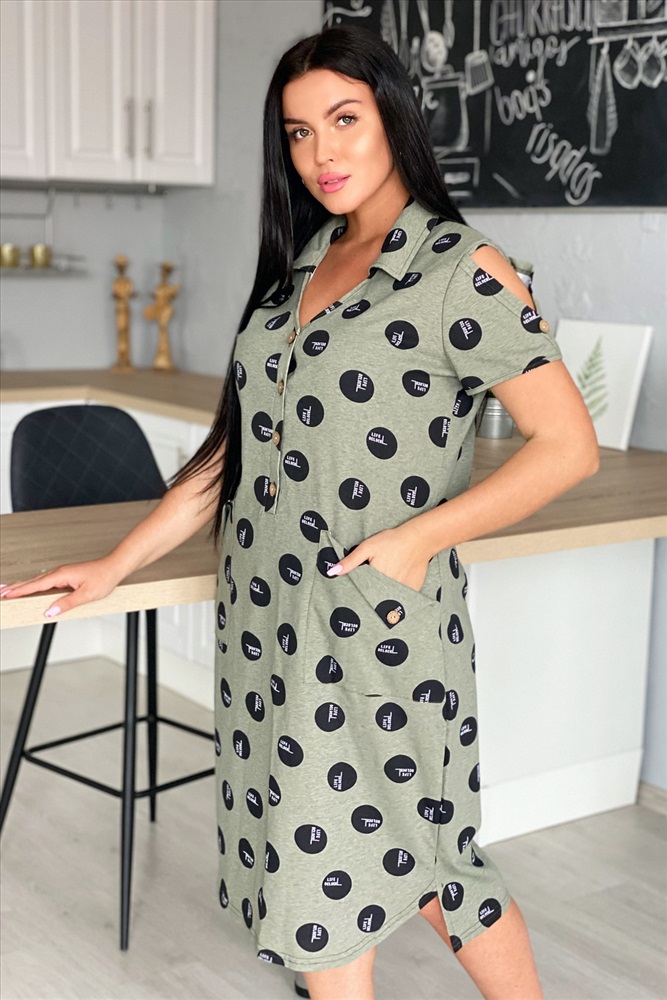 Застежка: пуговицы Платье женское полуприлегающего силуэта с застежкой поло.