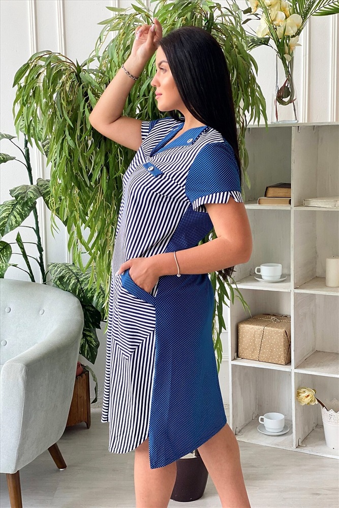 Страна производства: Россия Платье женское полуприлегающего силуэта. Полочка с отложным воротником, двумя накладными карманами.