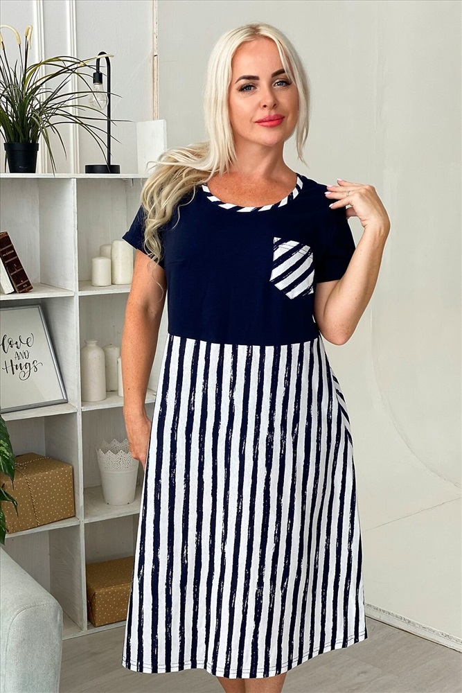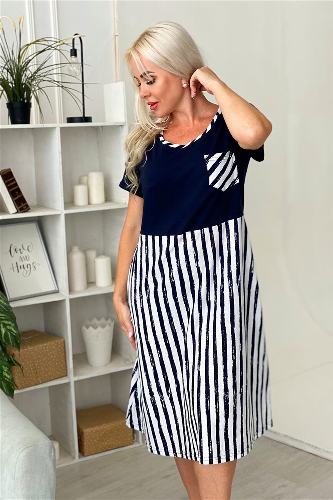 Страна производства: Россия Платье женское приталенное с нагрудными вытачками, накладным карманом.