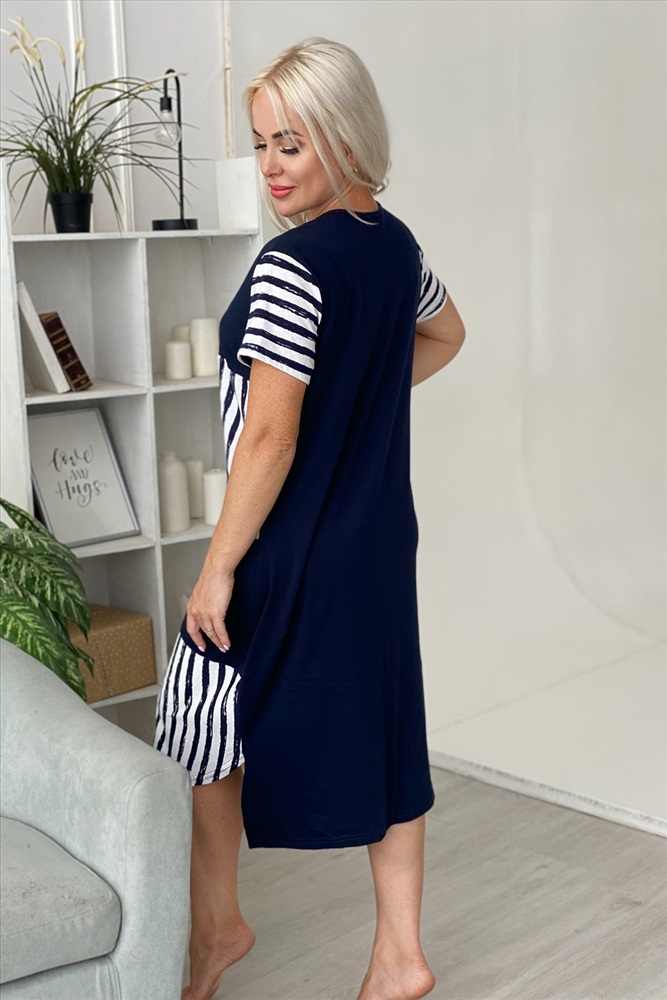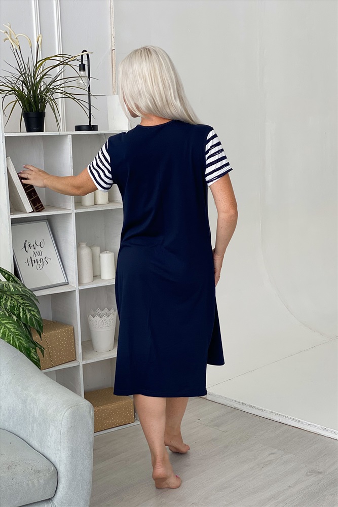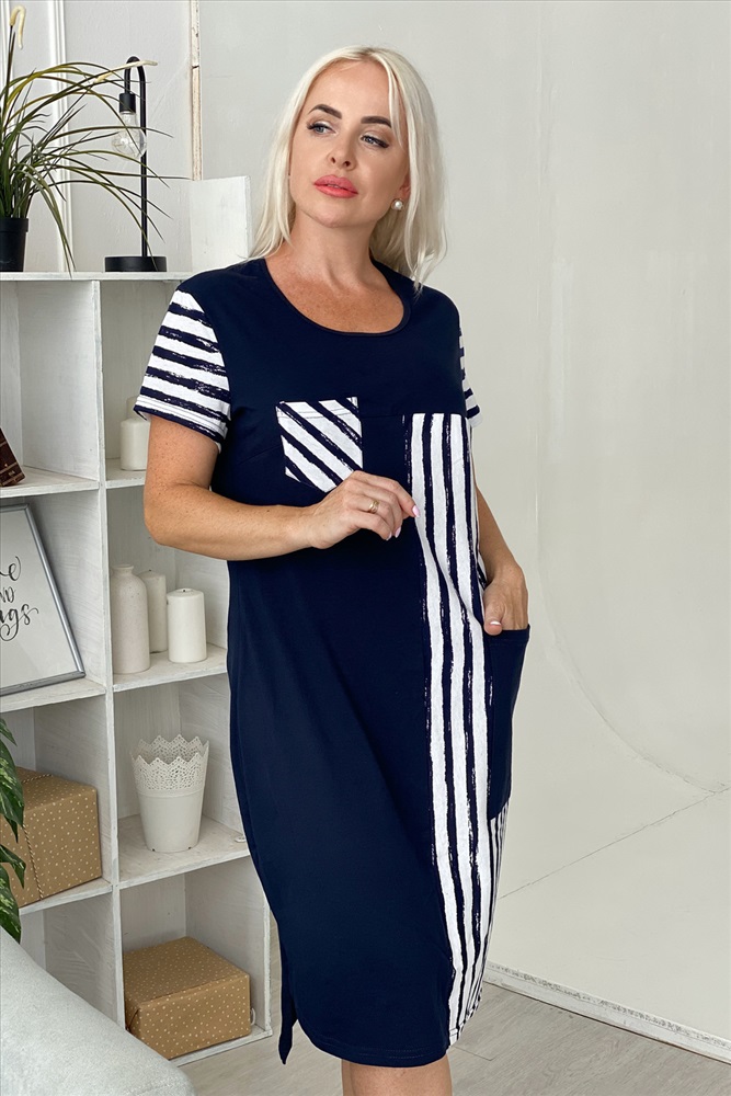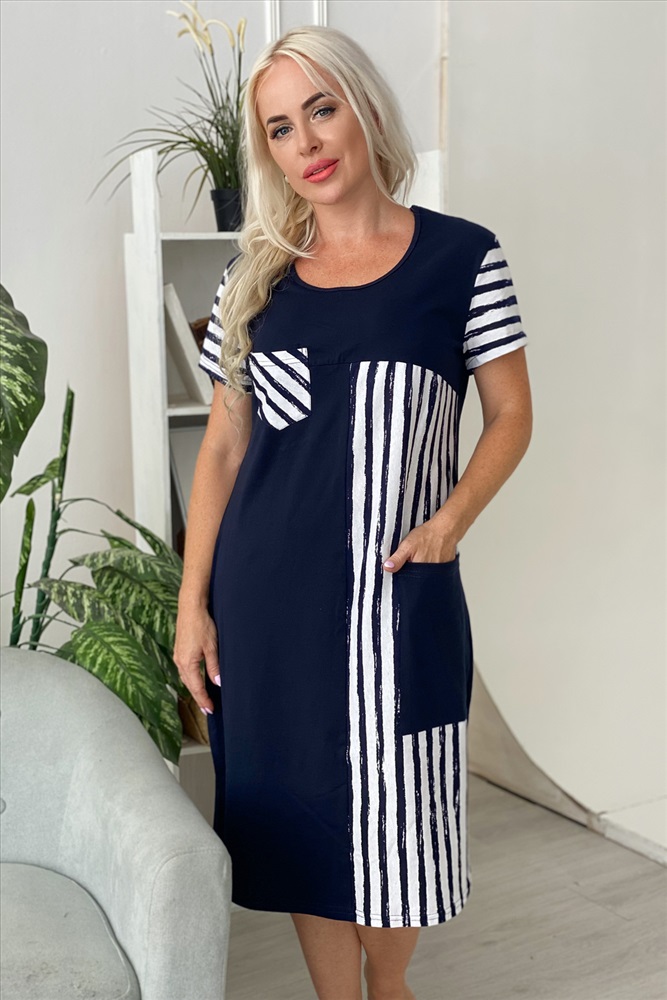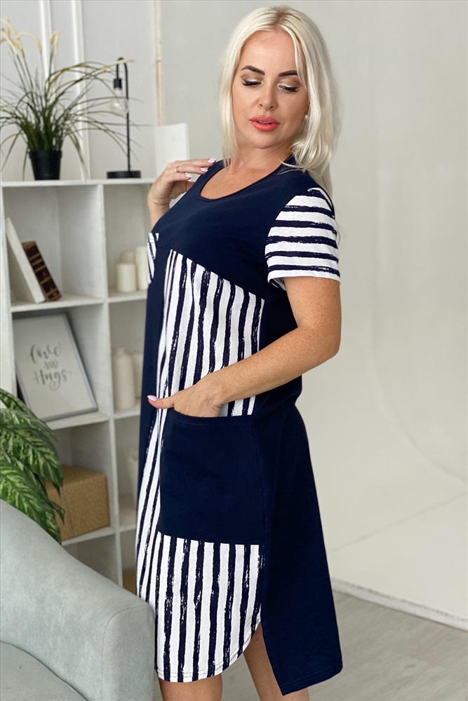 Состав: хлопок 100% Модель: Платье 7278 Тип товара: платье Материал: кулирка | кулирка Бренд: Натали Суслова Длина: средняя длина Карман: накладные НДС: 22% Отделка: с карманами Рейтинг: Рейтинг 4 и выше Рисунок: полоска Рукав: короткий рукав Сезонность: лето | осень | весна | зима Силуэт: полуприлегающий Скидка: любая Стиль: повседневный Воротник: без воротника Застежка: без застежки Платье женское полуприлегающего силуэта. Асимметричный стиль, два накладных кармана, спинка удлиненная. Таблица размеров и веса