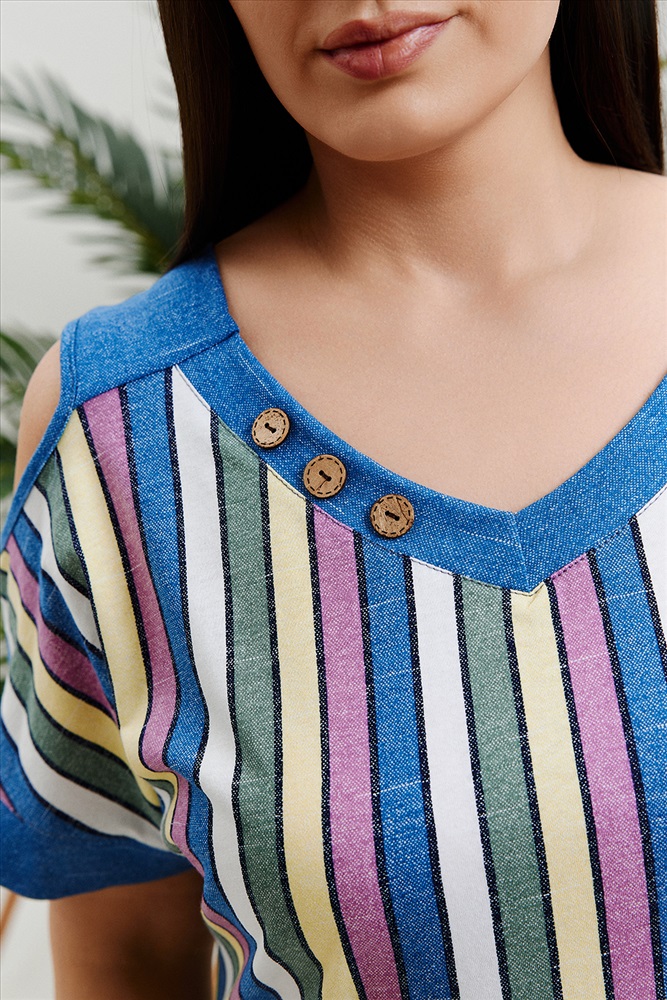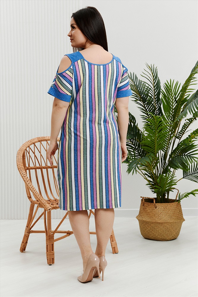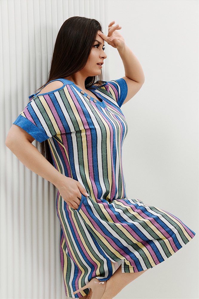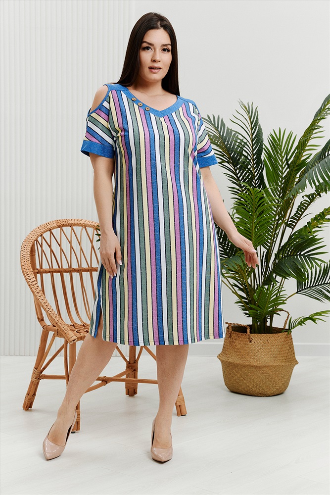 Застежка: без застежки Платье женское с V-образным вырезом, рукава с открытым плечом, по низу рукавов планка, по низу изделия разрезы.