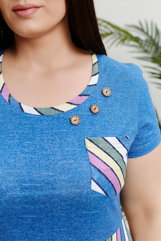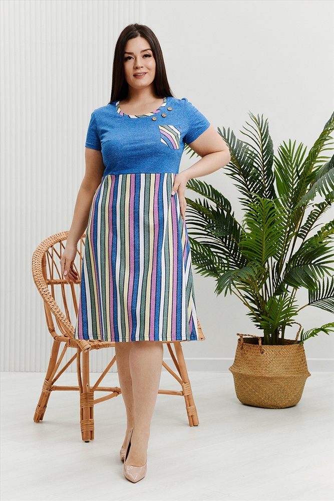 Застежка: без застежки Платье женское приталенное с нагрудными вытачками, накладным карманом.