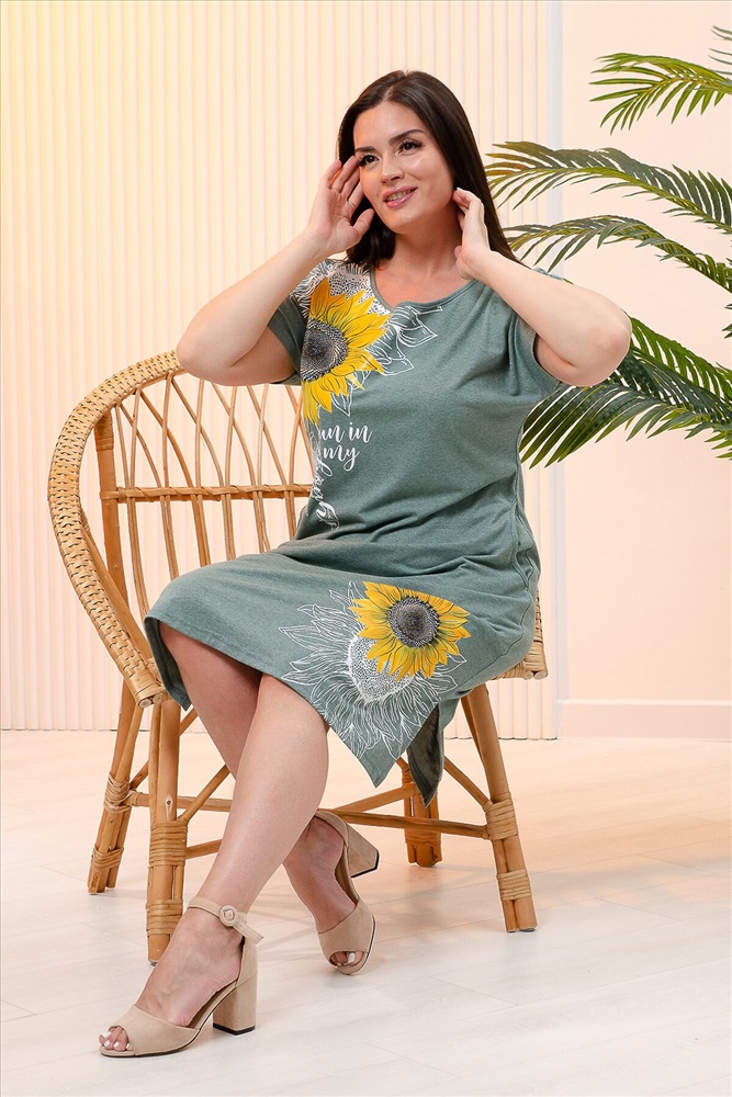 ID товара: 902895 Состав: Полиэстер 57%, Хлопок 43% Сезон: Весна/Лето Длина: Ниже колена Фасон: Полуприлегающий Рукав: короткие Вырез горловины: Округлый Рисунок: цветочный Тип карманов: В шве Декоративные элементы: Принт Основная ткань: Полиэстер Стиль: повседневный Вид ткани: Кулирка Страна бренда: Россия Страна производства: Россия Женское легкое платье с ярким принтом станет незаменимым элементом летнего гардероба! Данная модель отлично подойдет в качестве повседневной одежды, а так же для летних прогулок, путешествий и дачи. Платье выгодно подчеркивает силуэт женской фигуры и будет отличным вариантом для создания уютного домашнего образа. Благодаря свободному фасону, не обтягивает фигуру и не сковывает движения. Женское платье больших размеров понравится как молодым девушкам, так и женщинам любого возраста и телосложения. Комментарии к товару